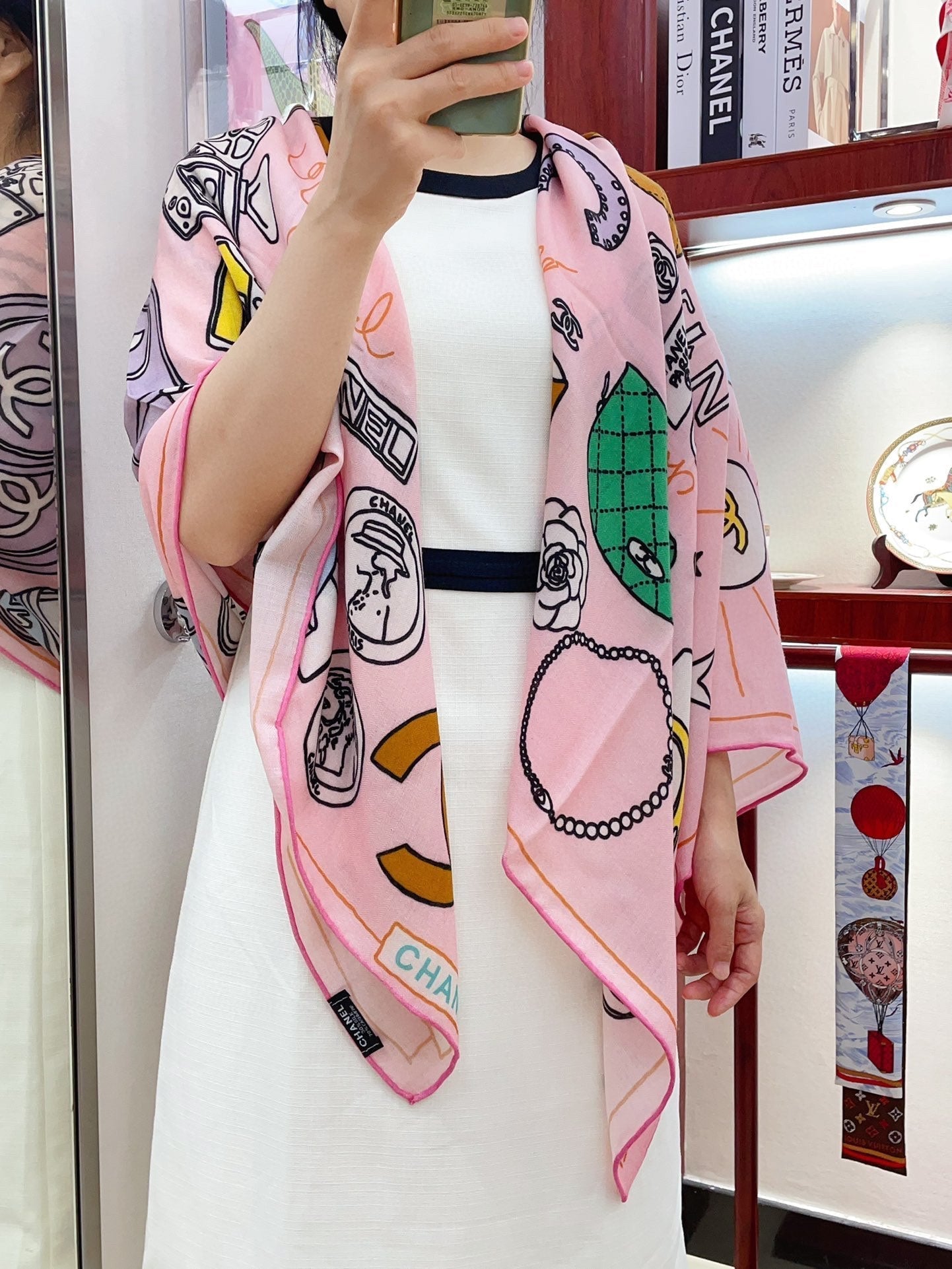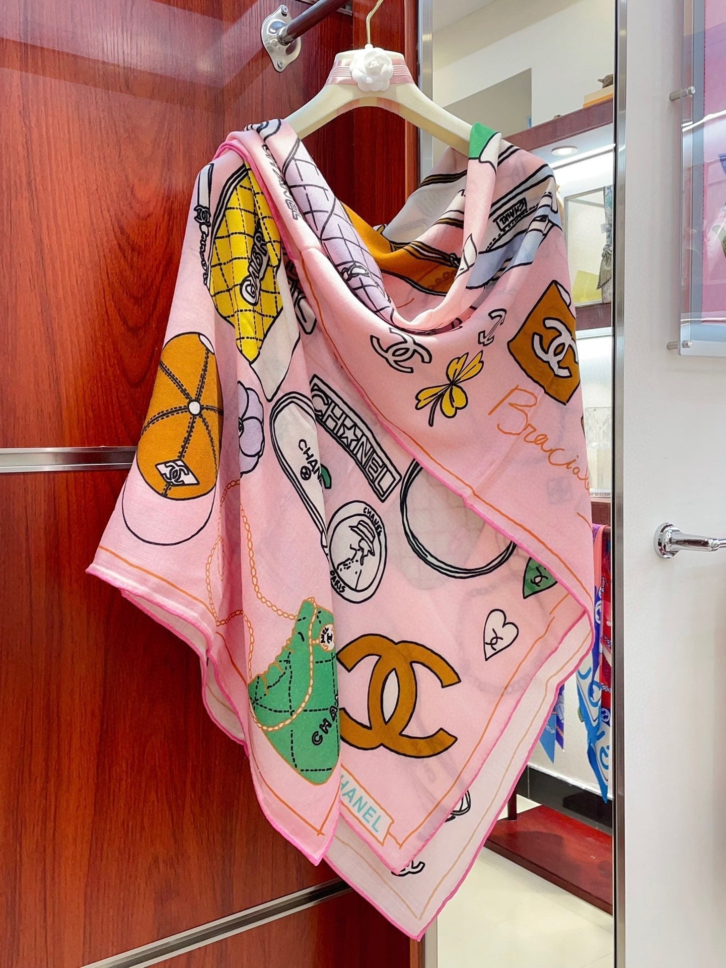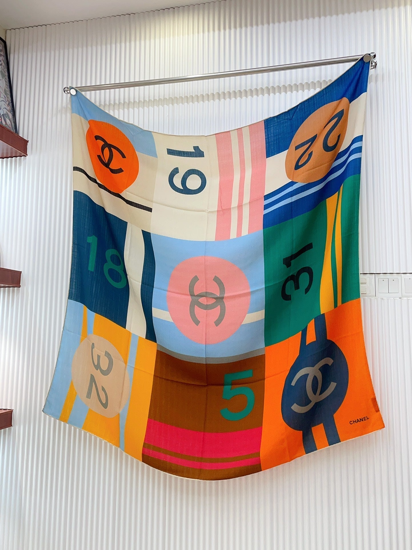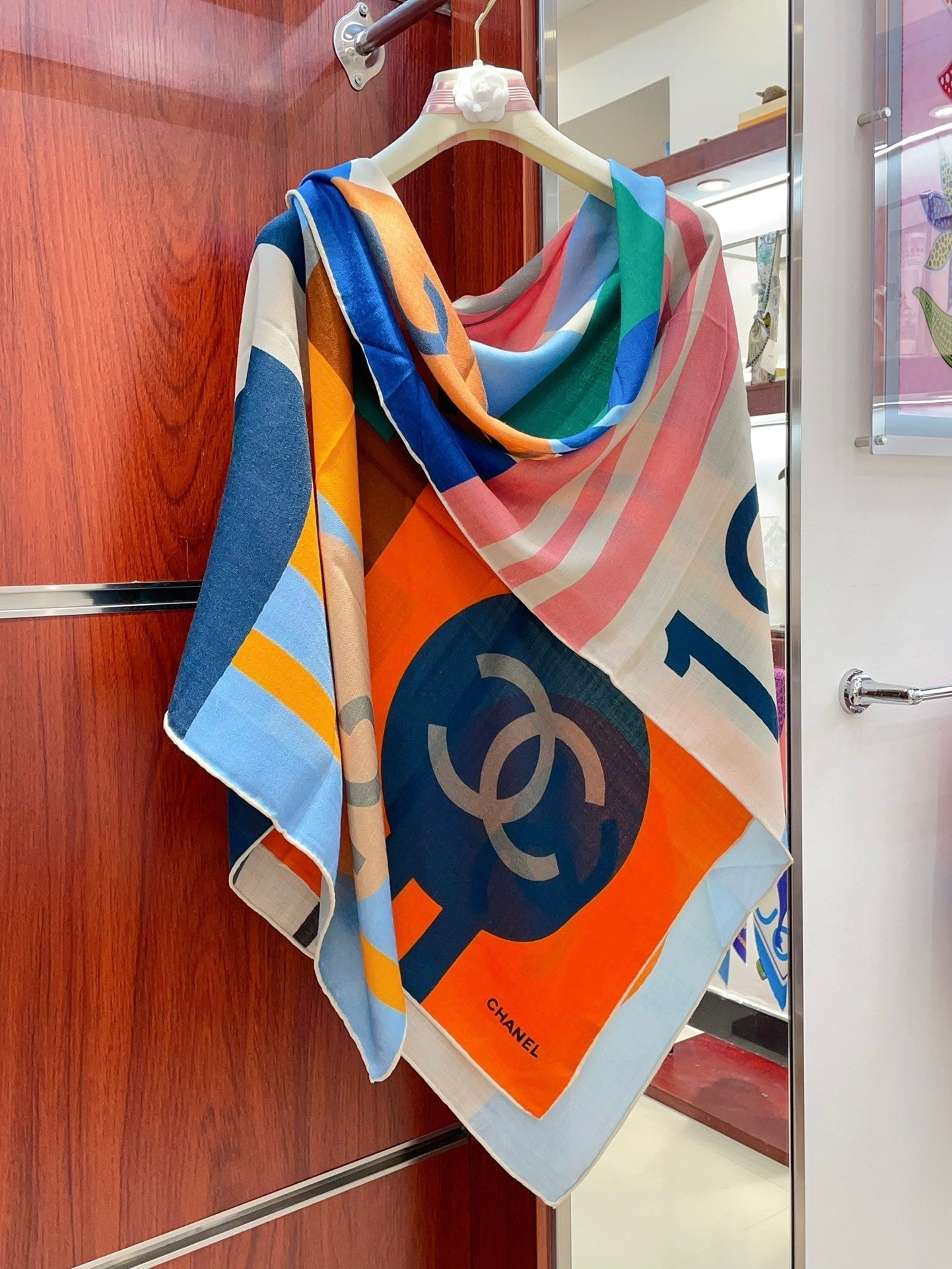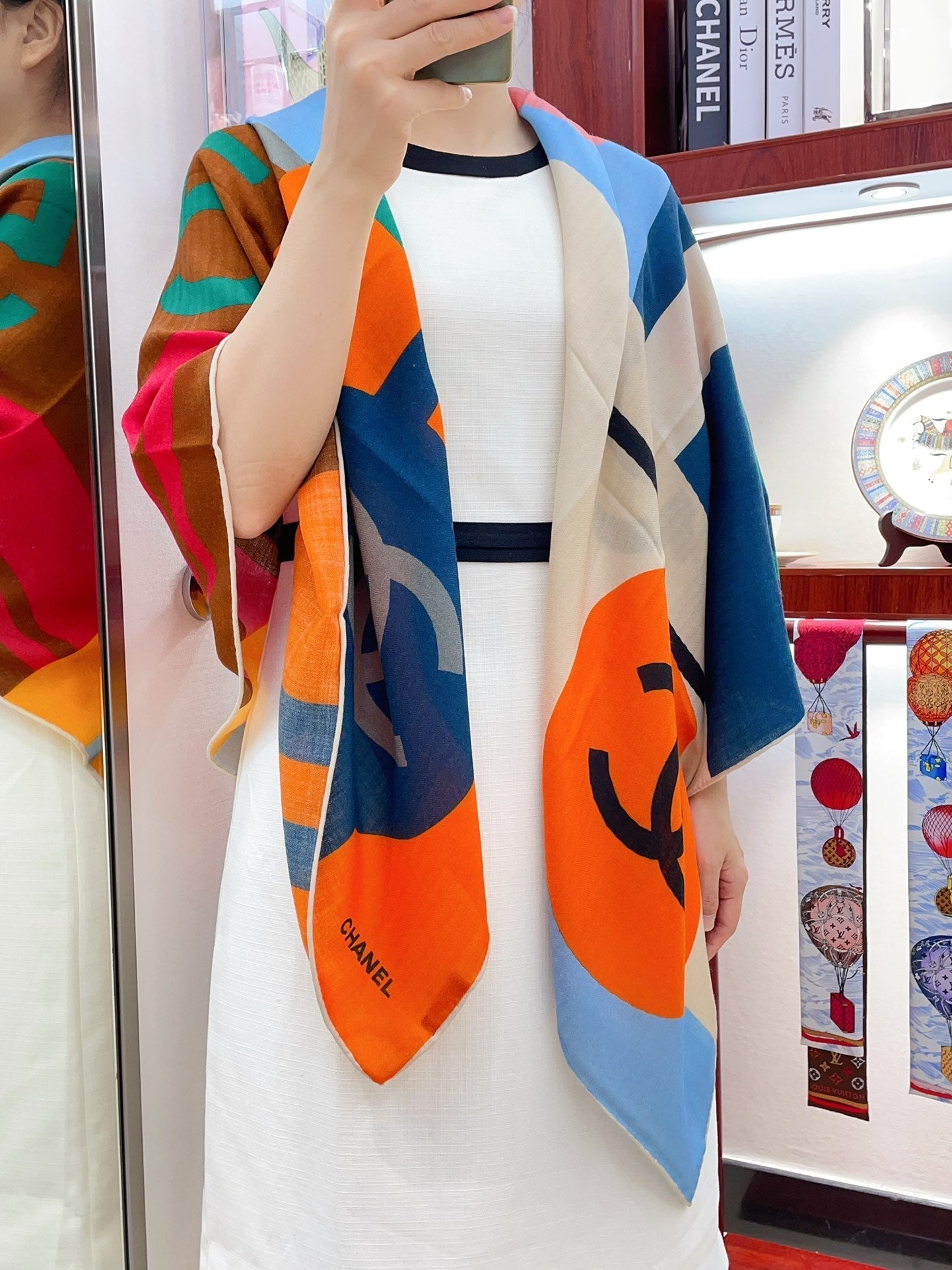CC Square Scarf 140 CM In Colorful Cashmere Linen Fabric 371900
