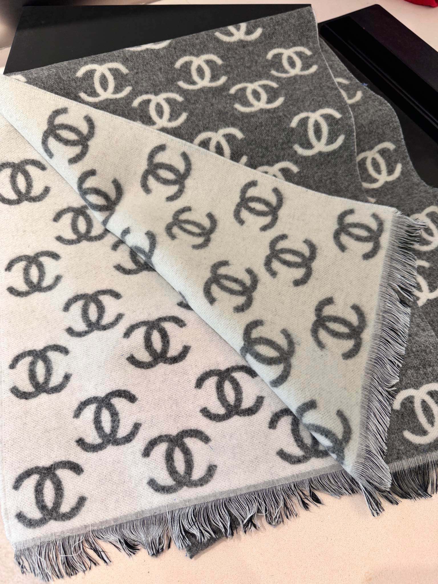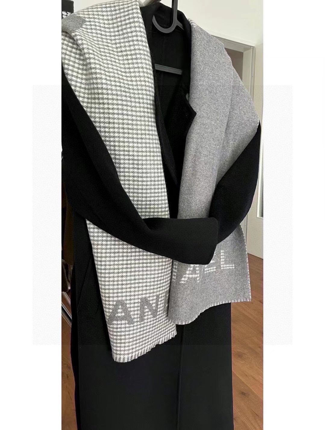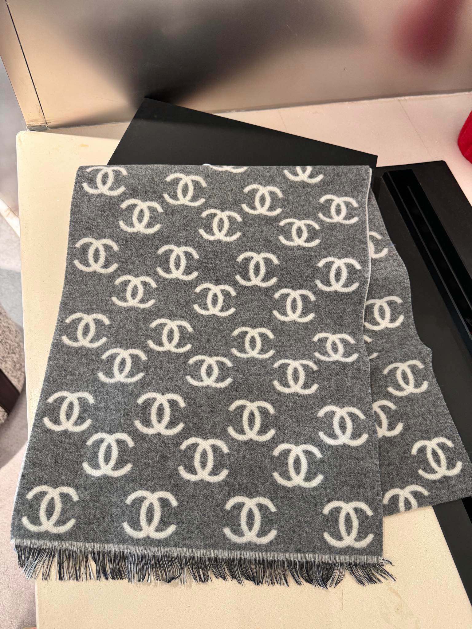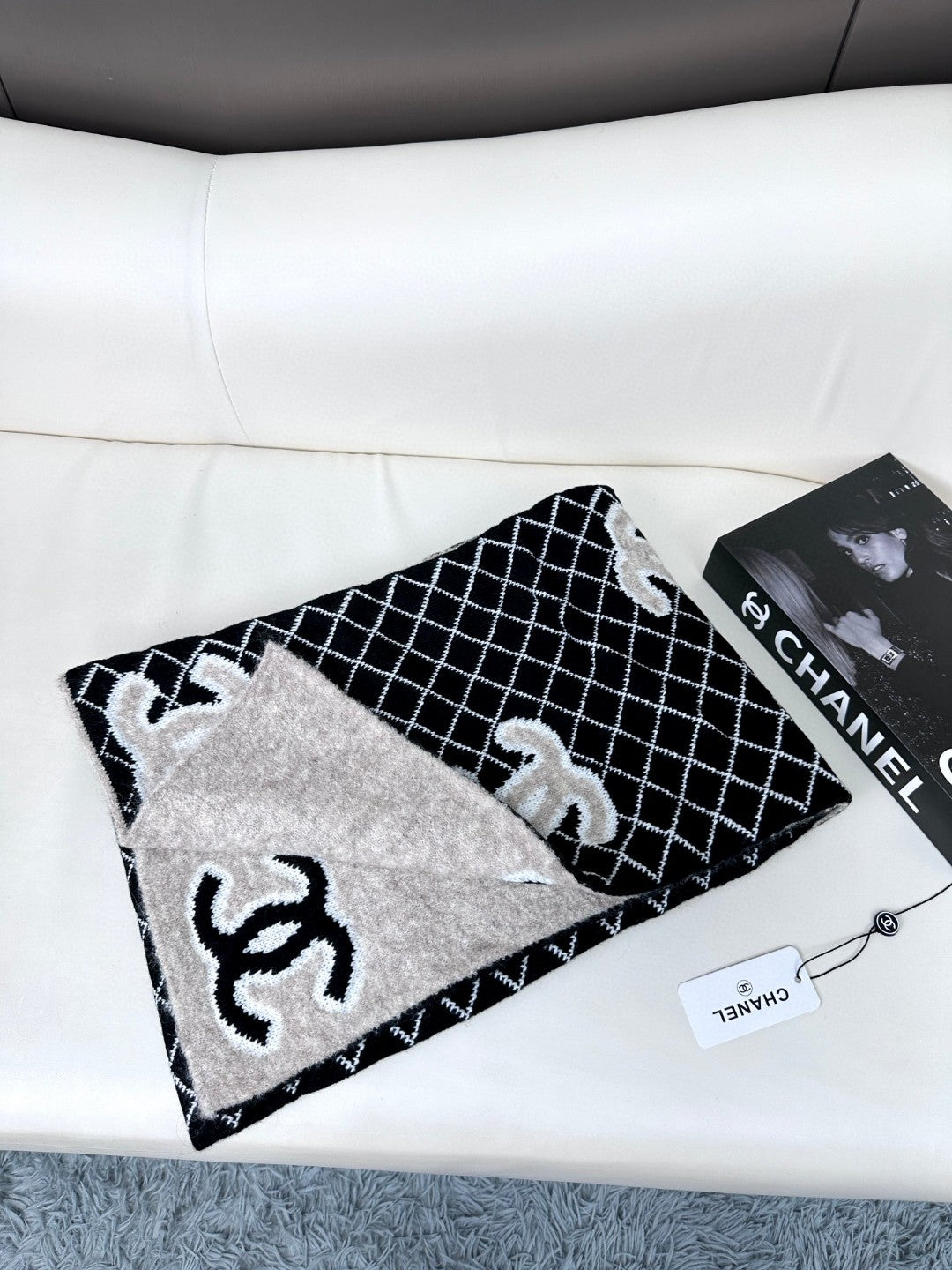 CC Scarf 180 CM In Black Mix Light Grey Print Logo Wool And Cashmere 359270