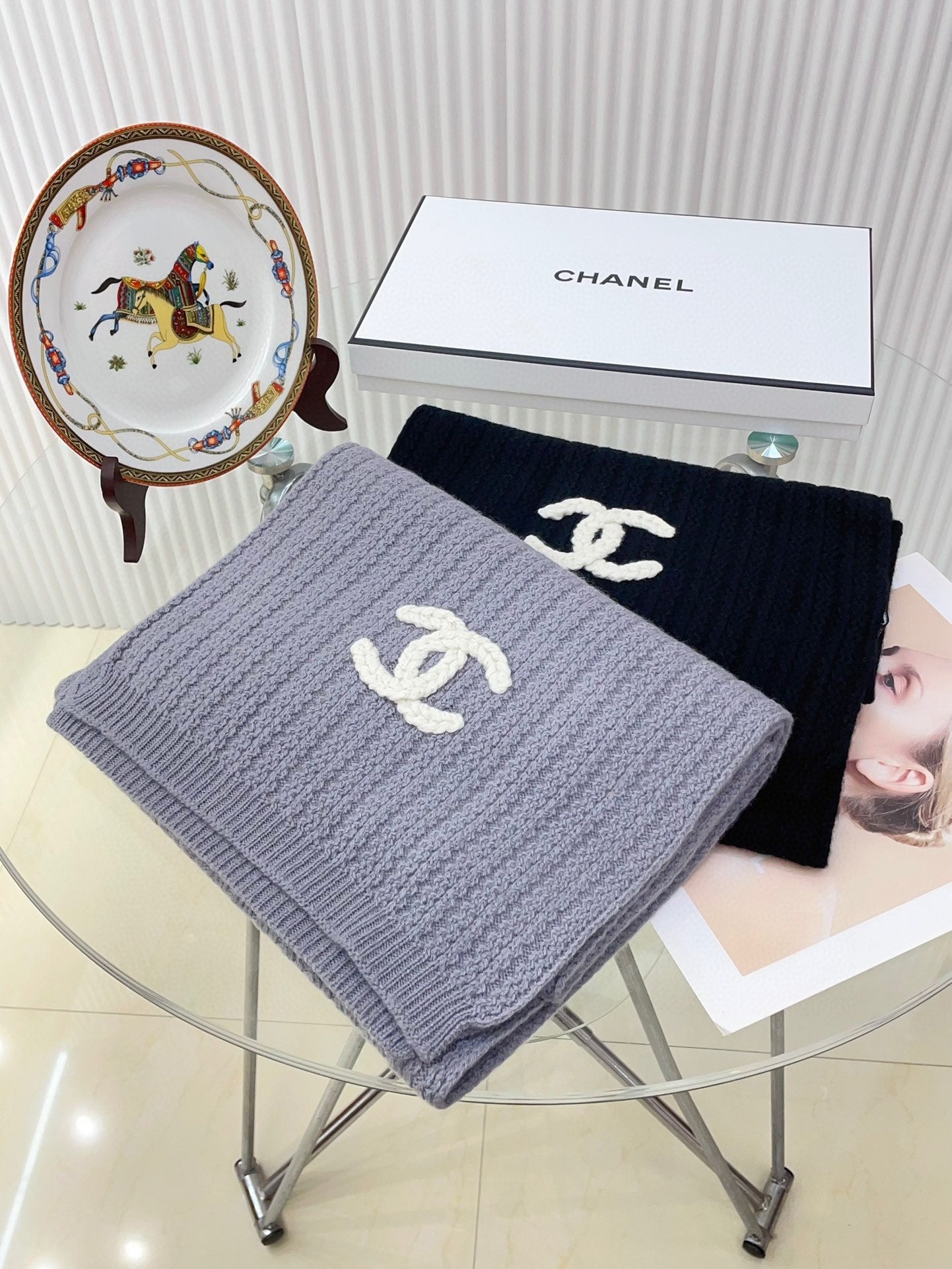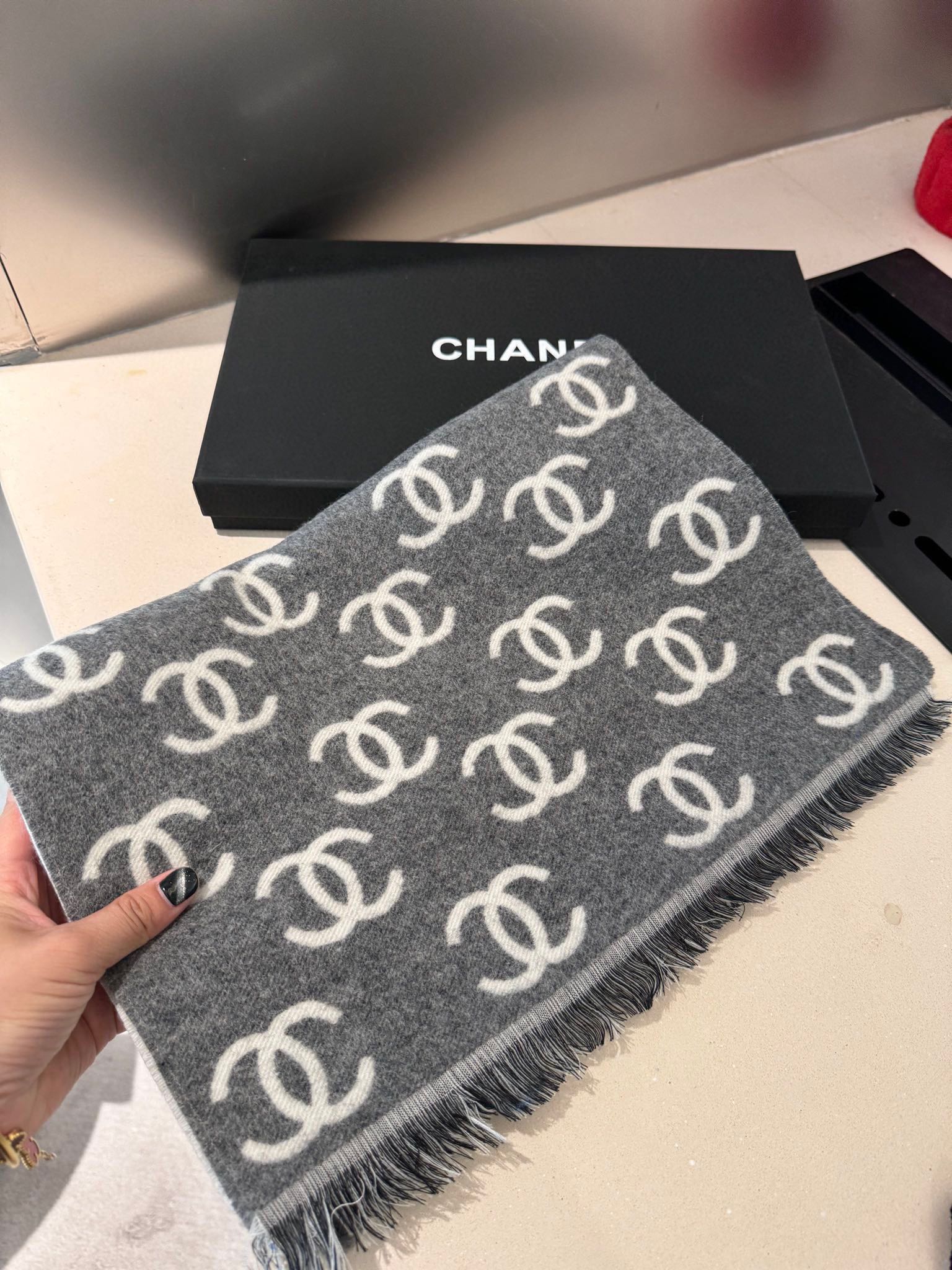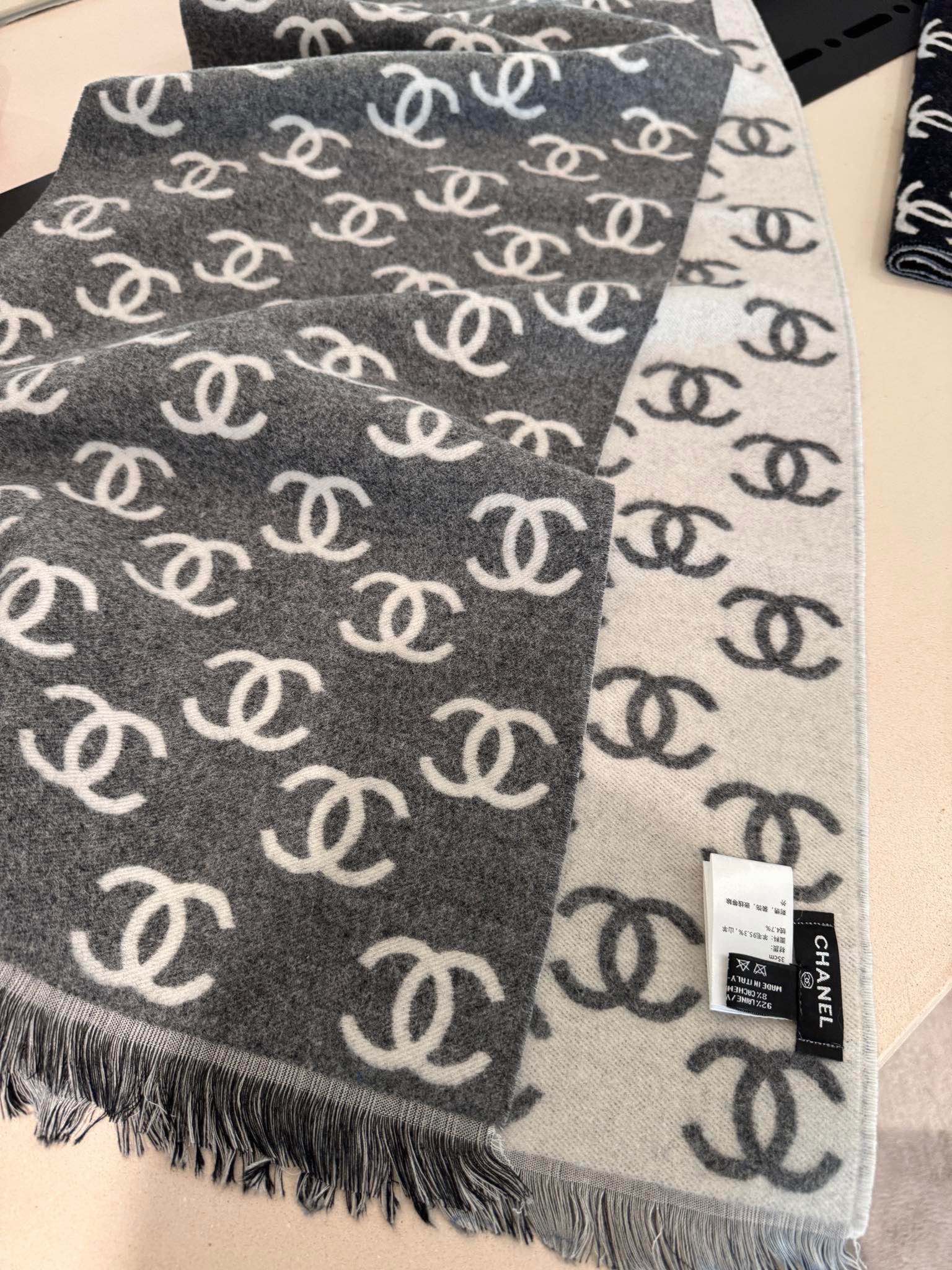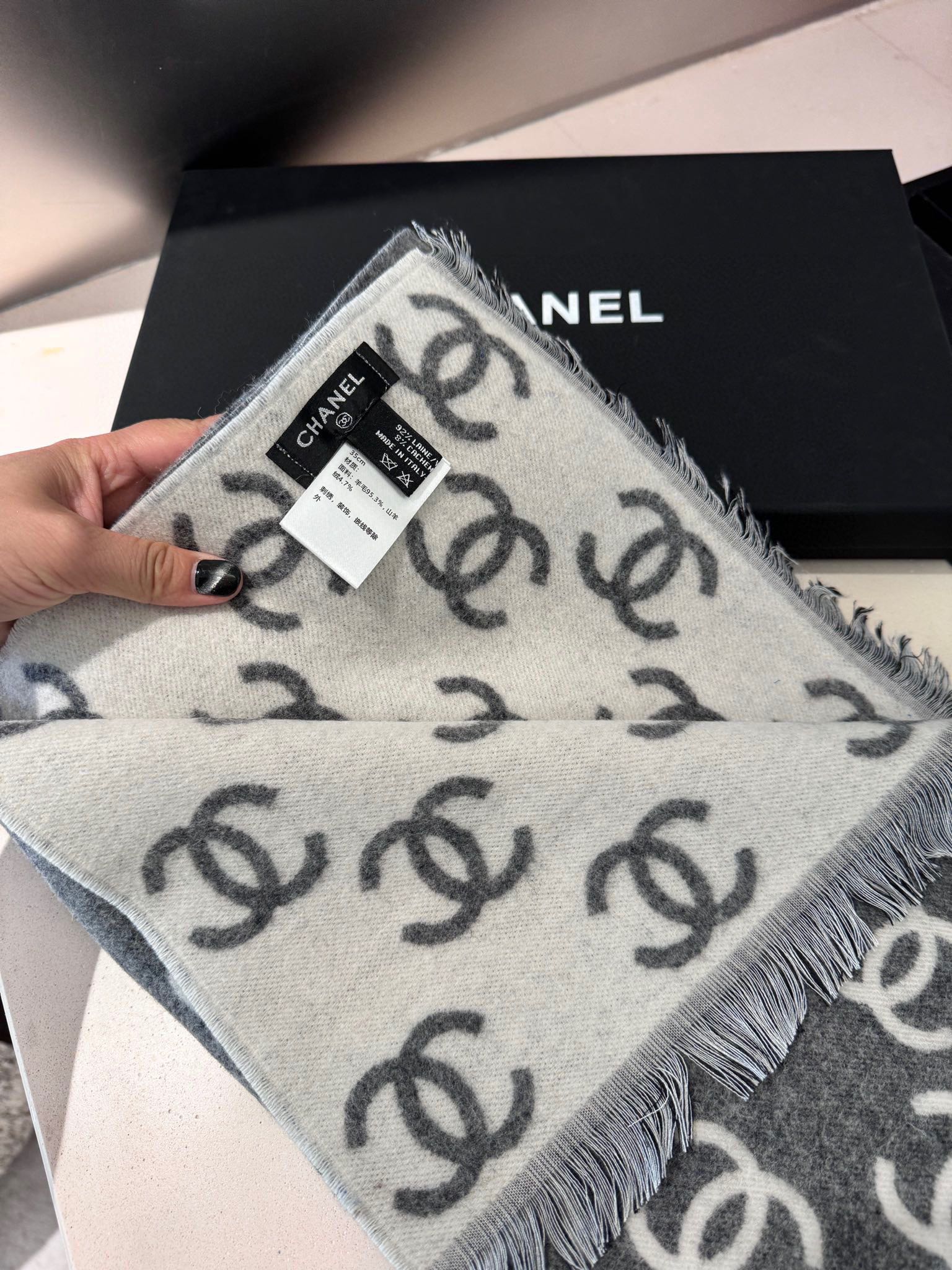 CC Scarf 180 CM In Black Mix Light Grey Print Logo Wool And Cashmere 359270