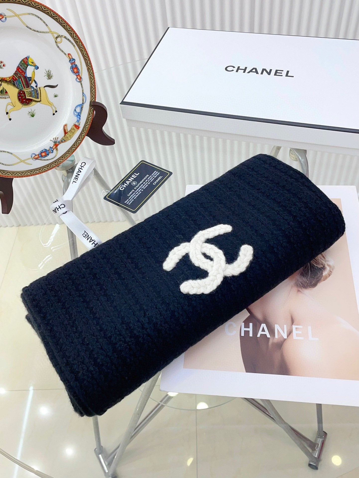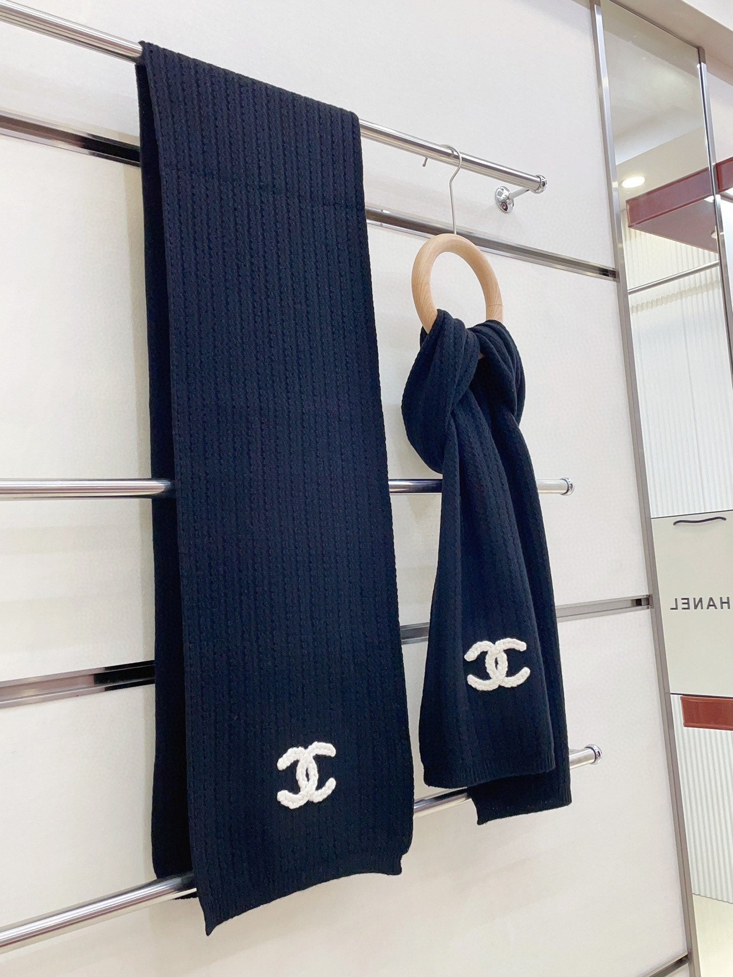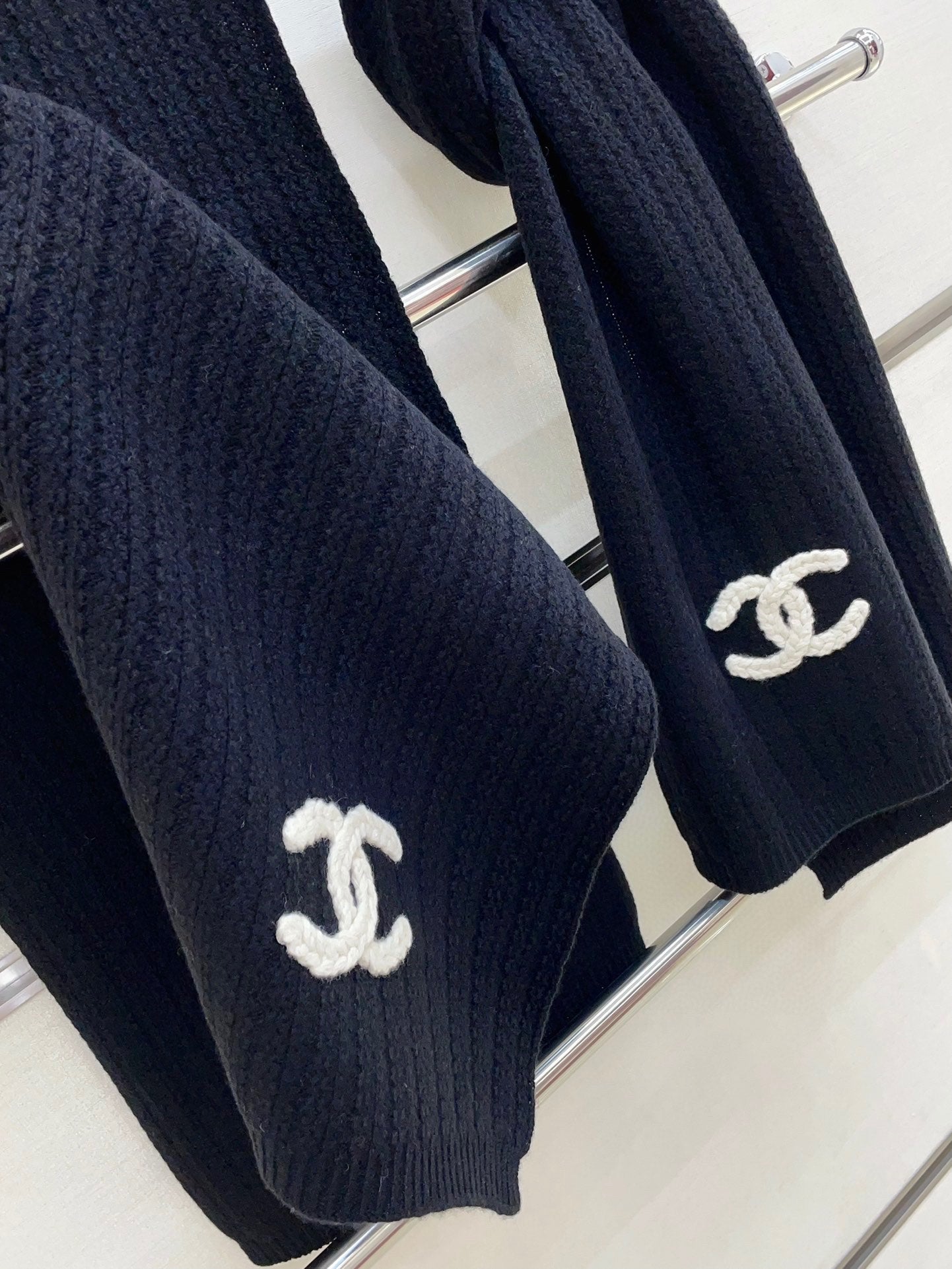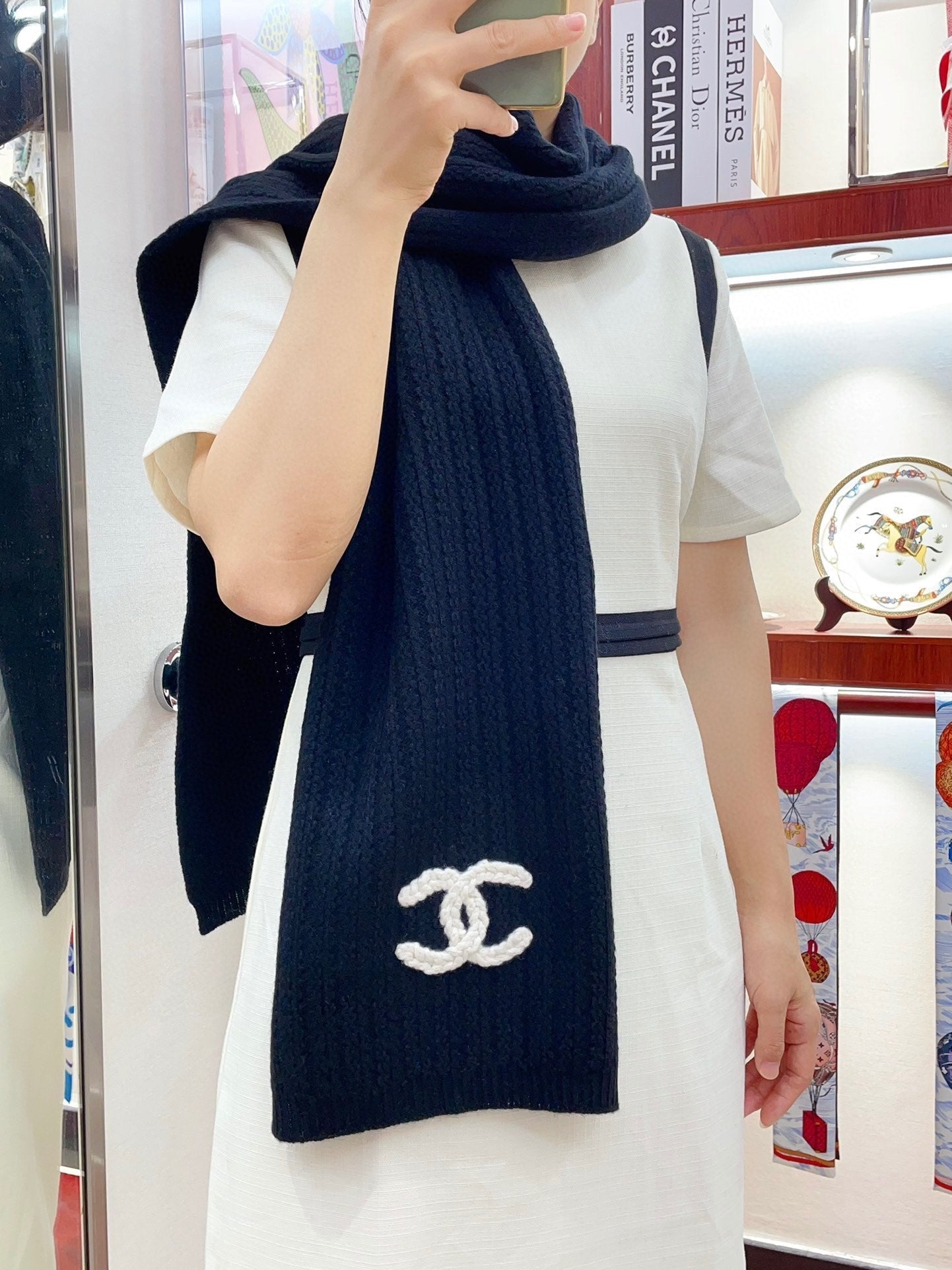 CC Scarf 200 CM In Black With White Logo Cashmere 363601
