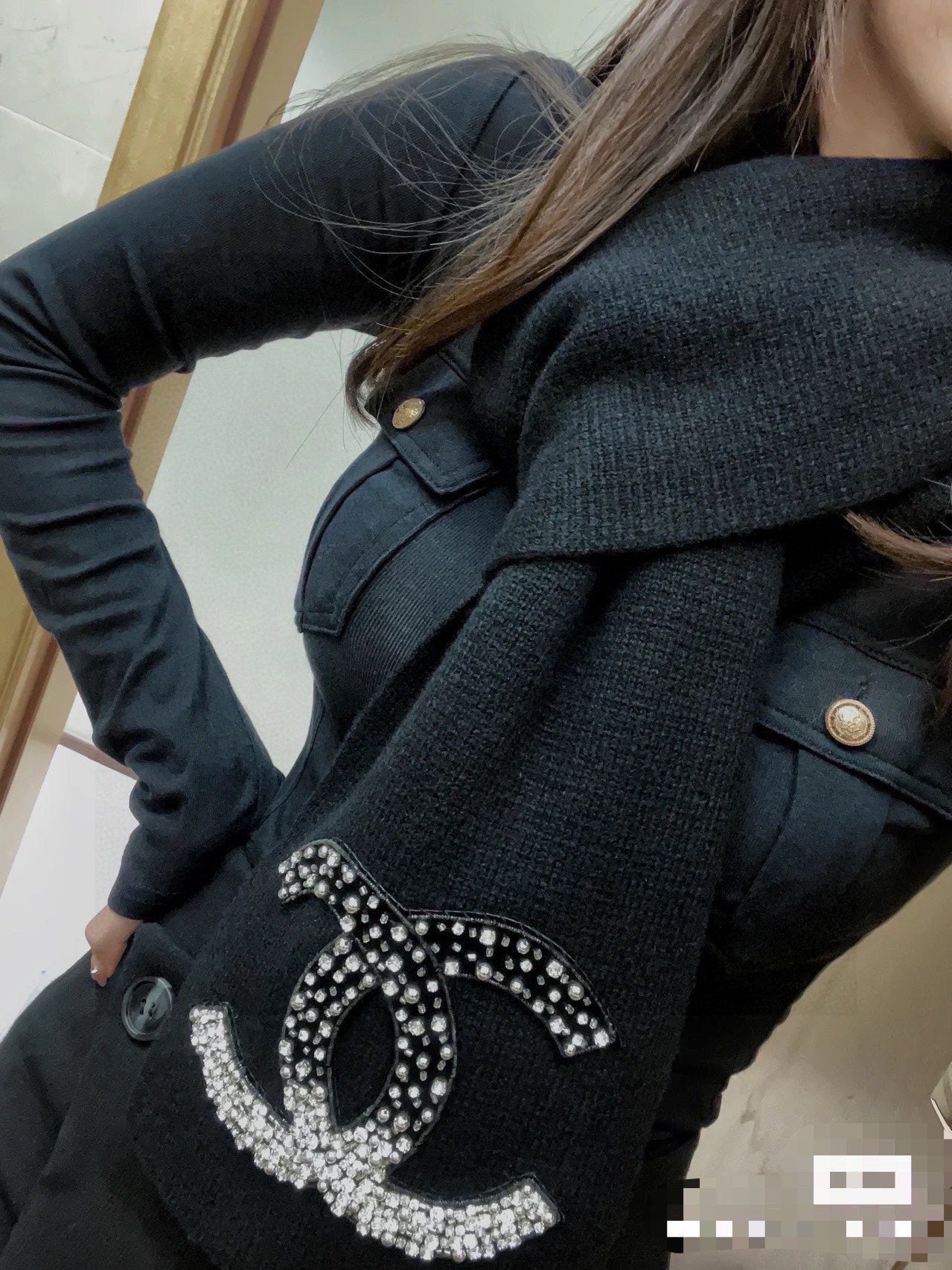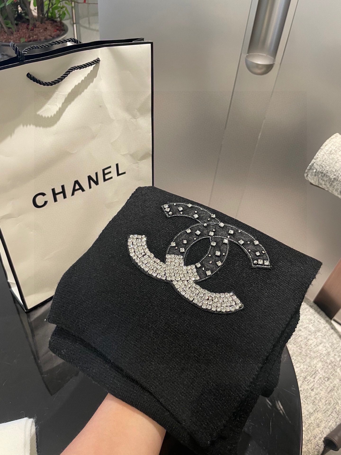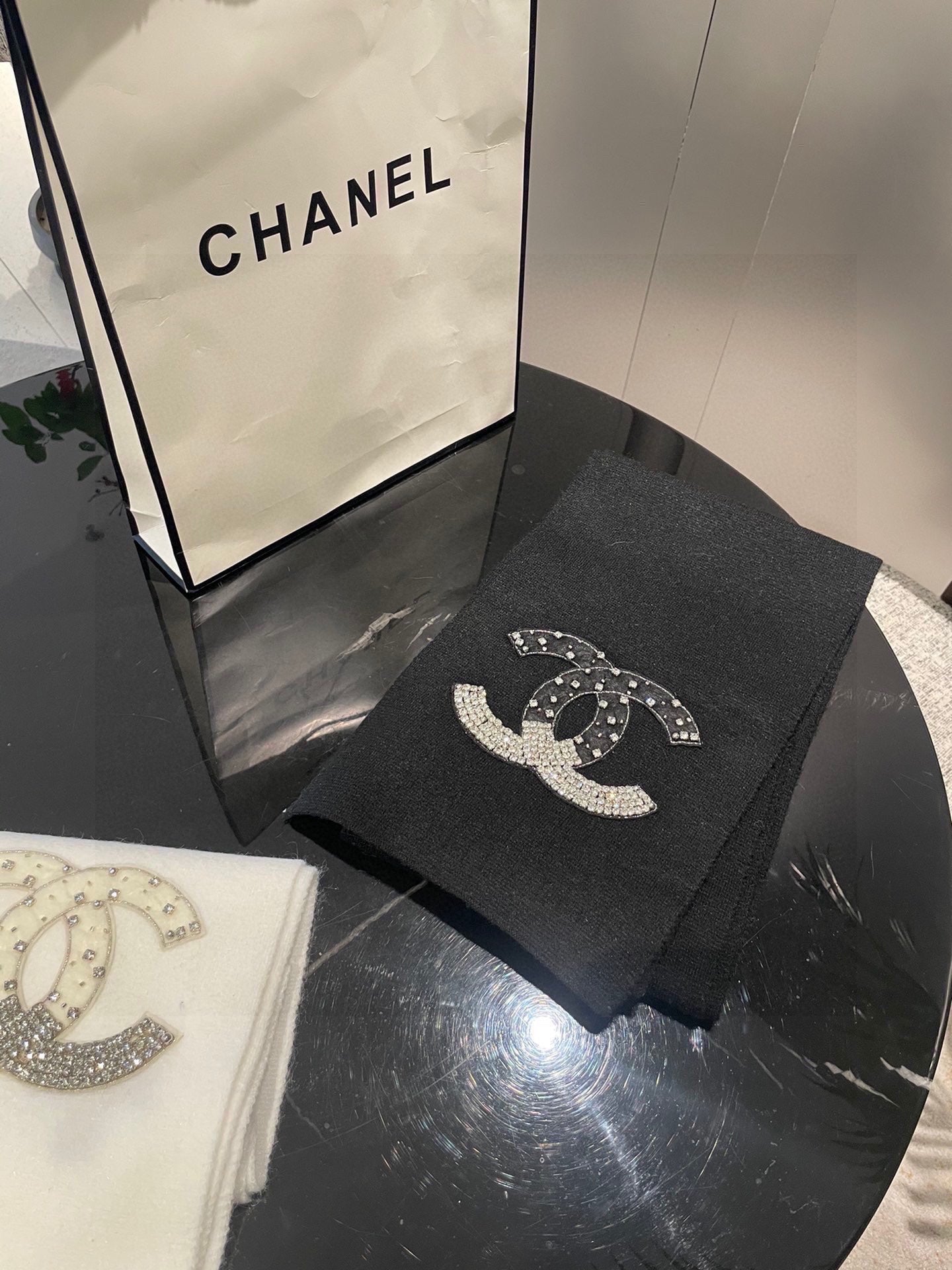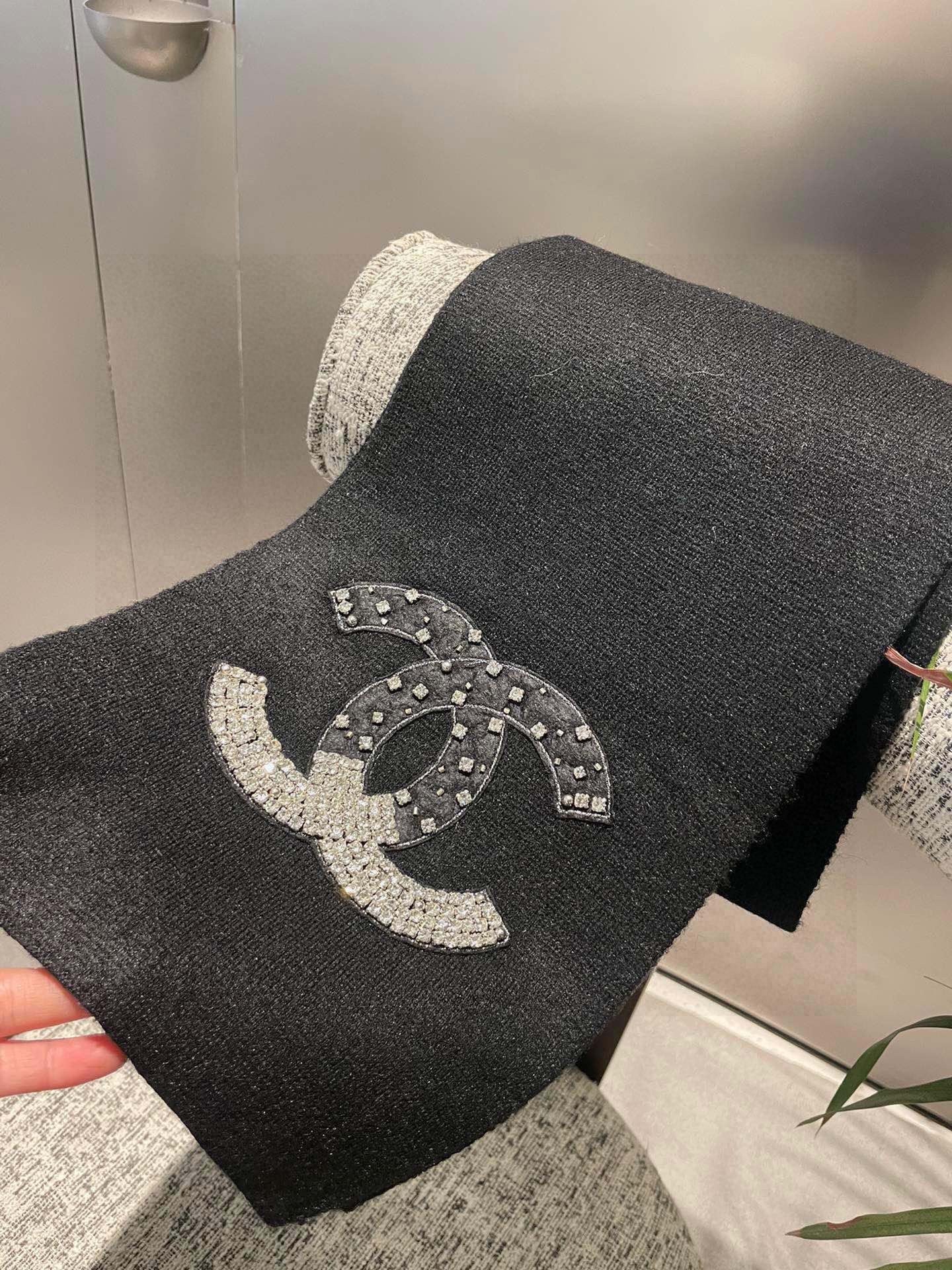 CC Scarf 200 CM In Black With White Logo Cashmere 363601