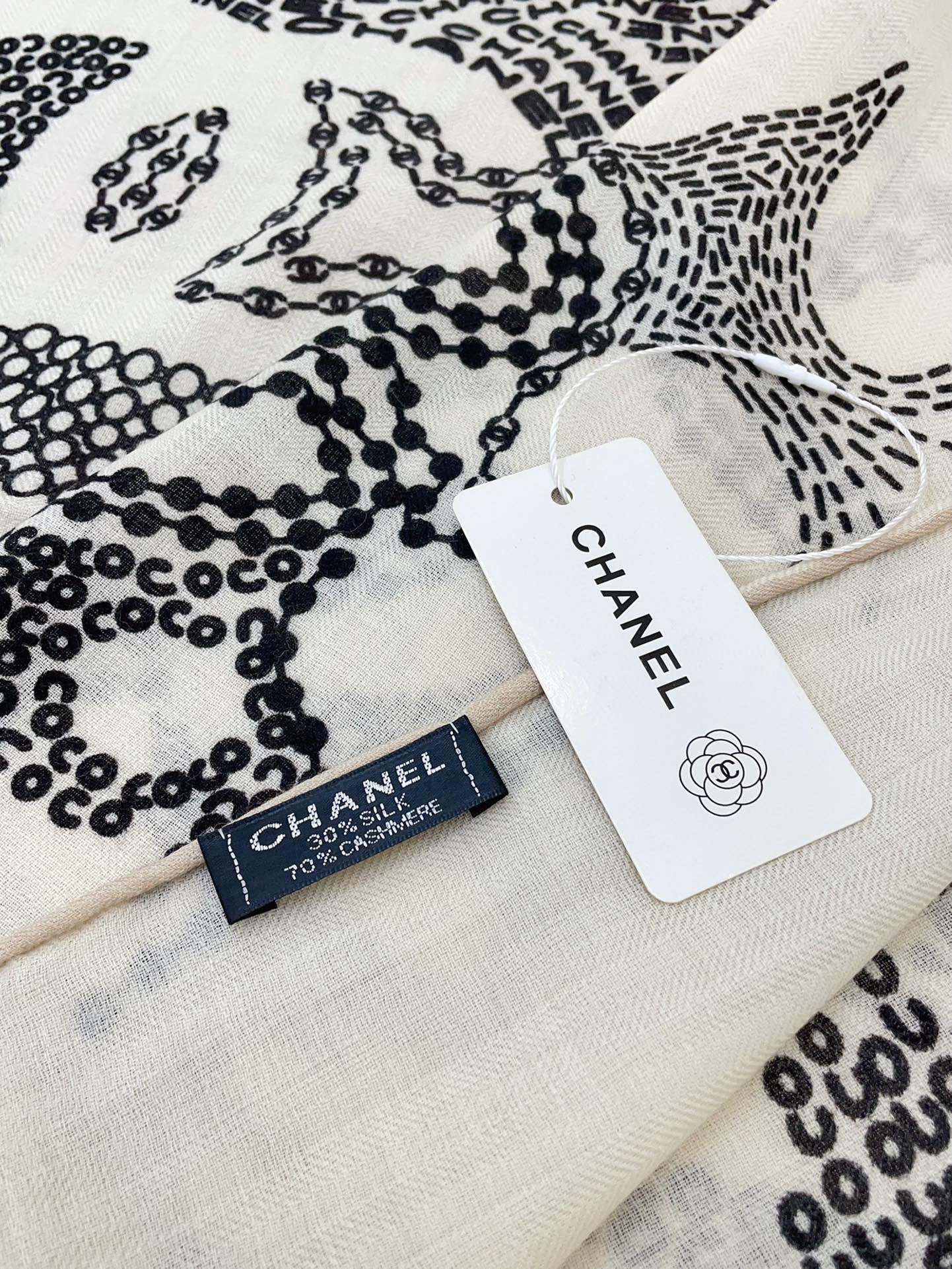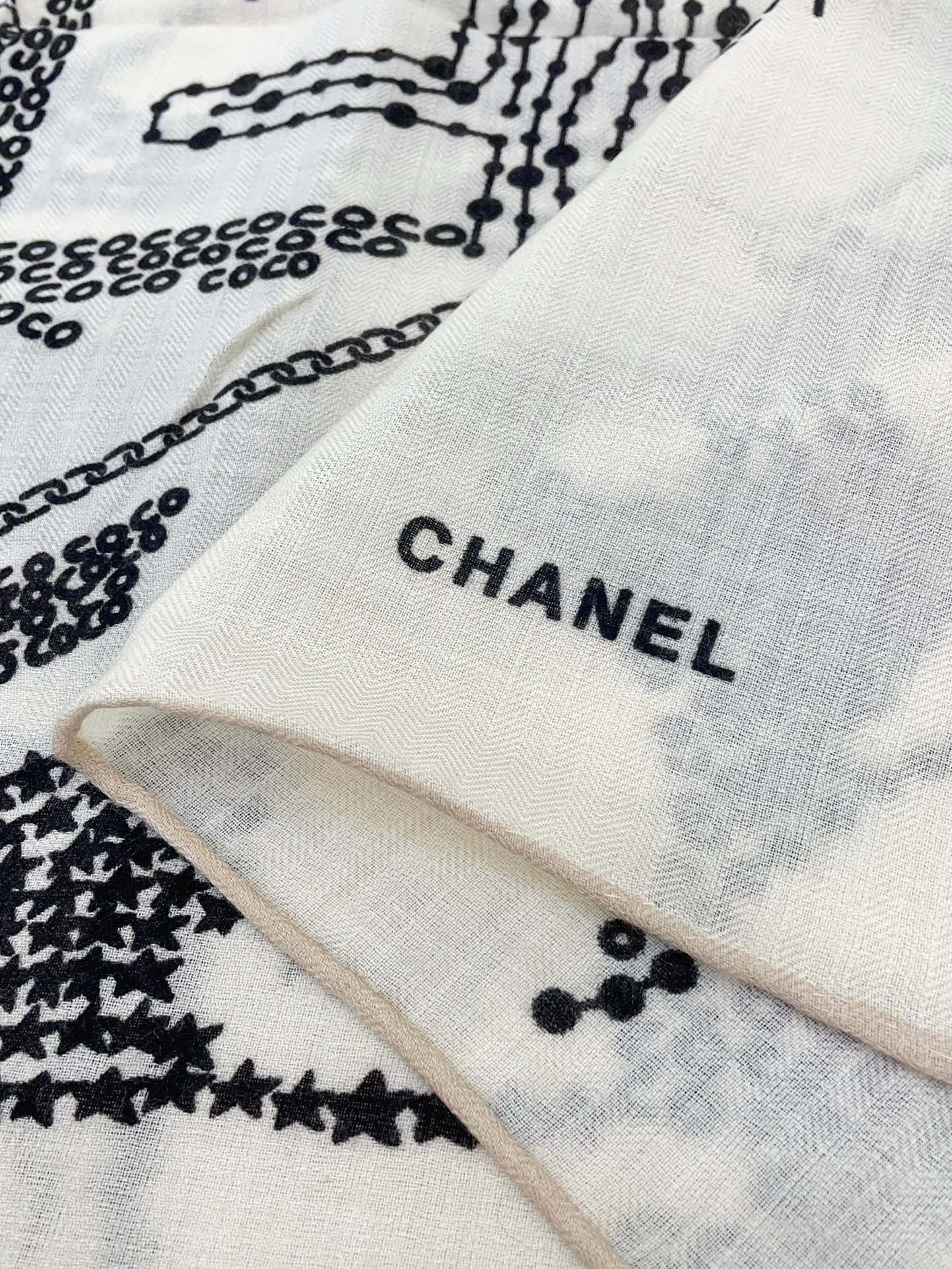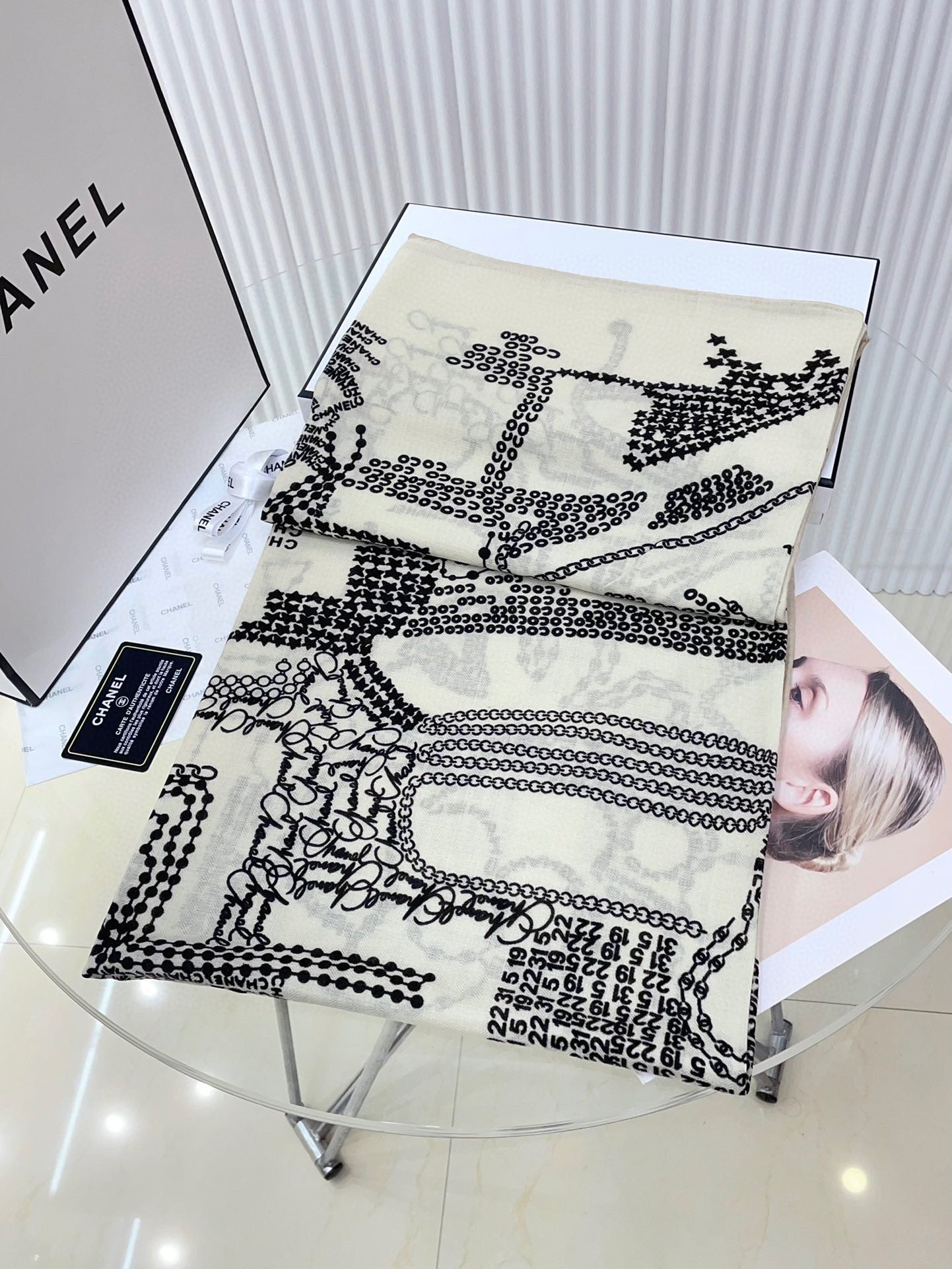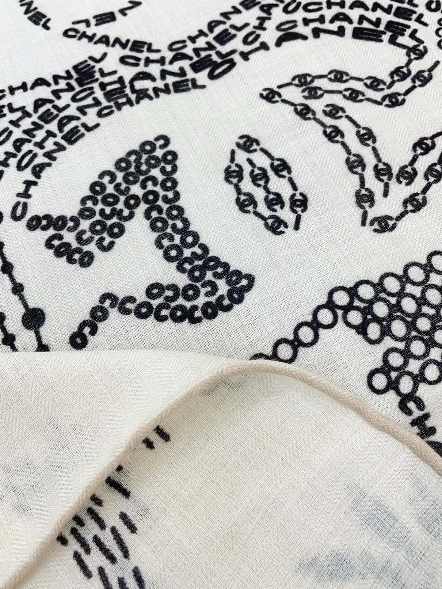 CC Scarf 200 CM In White With Black Logo Cashmere 363602