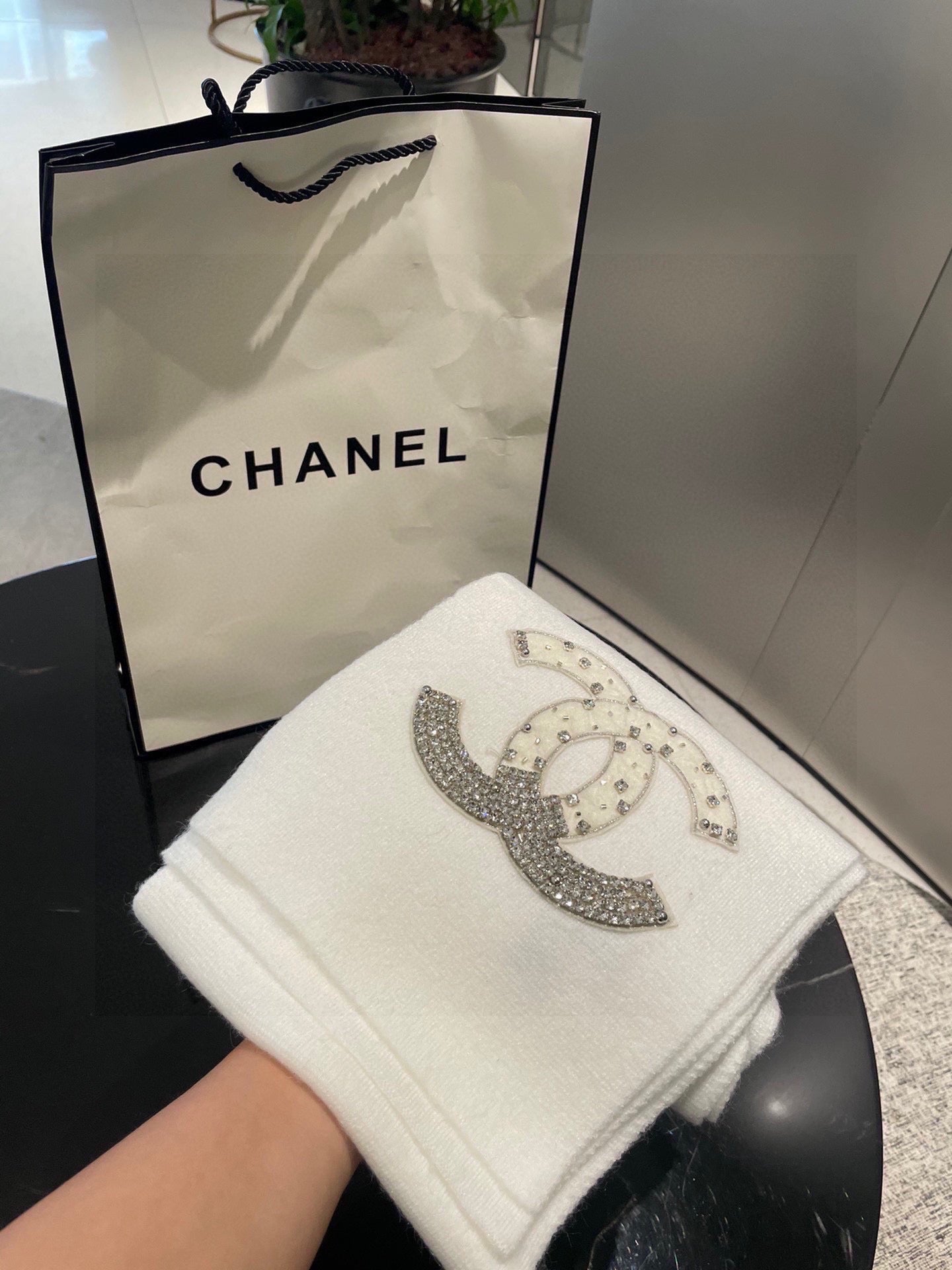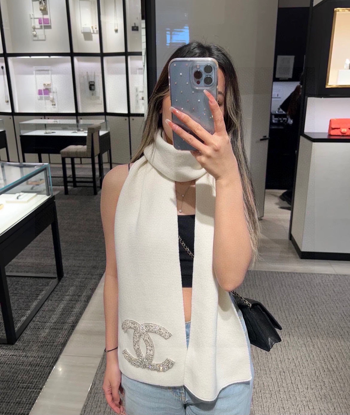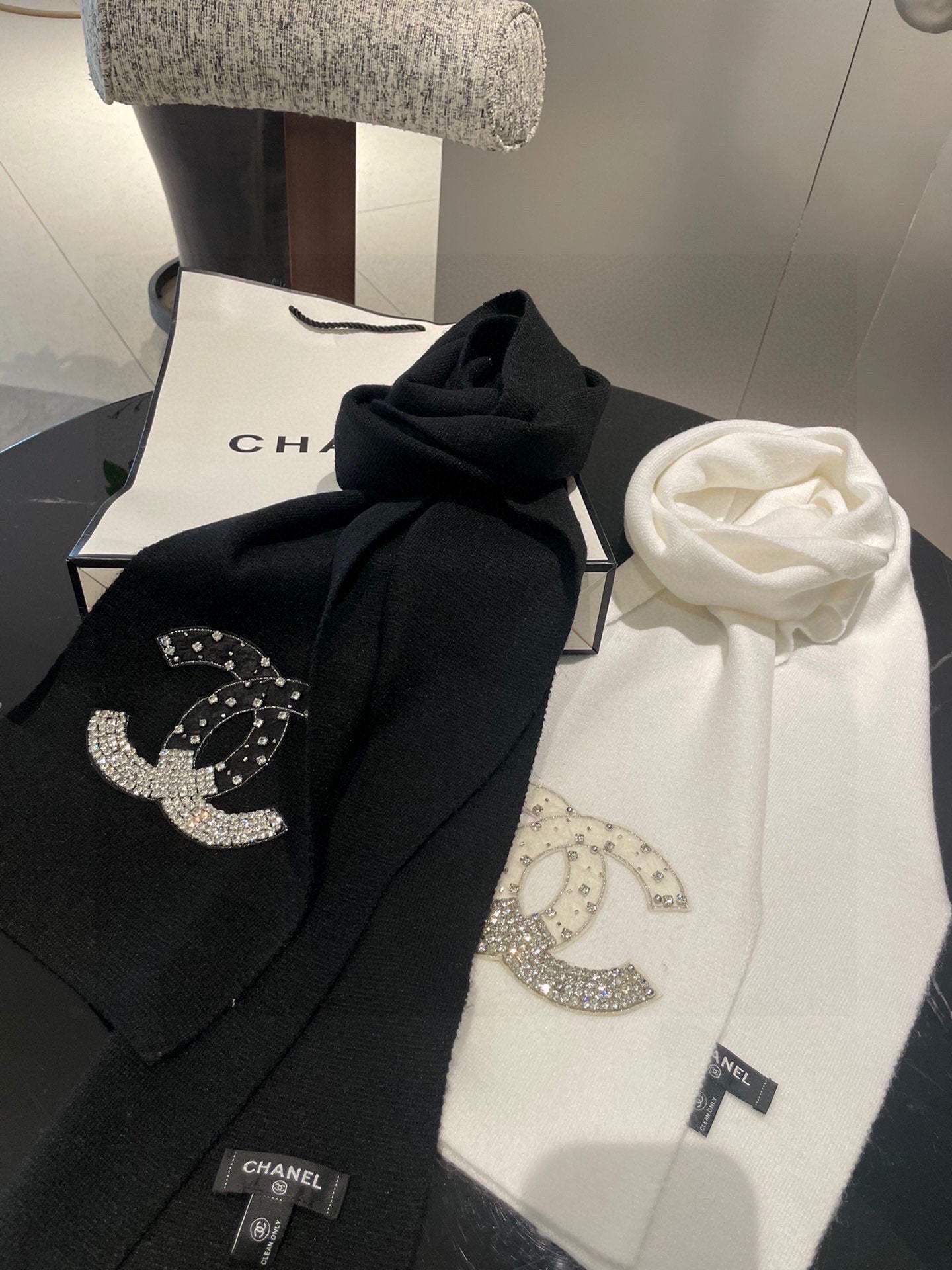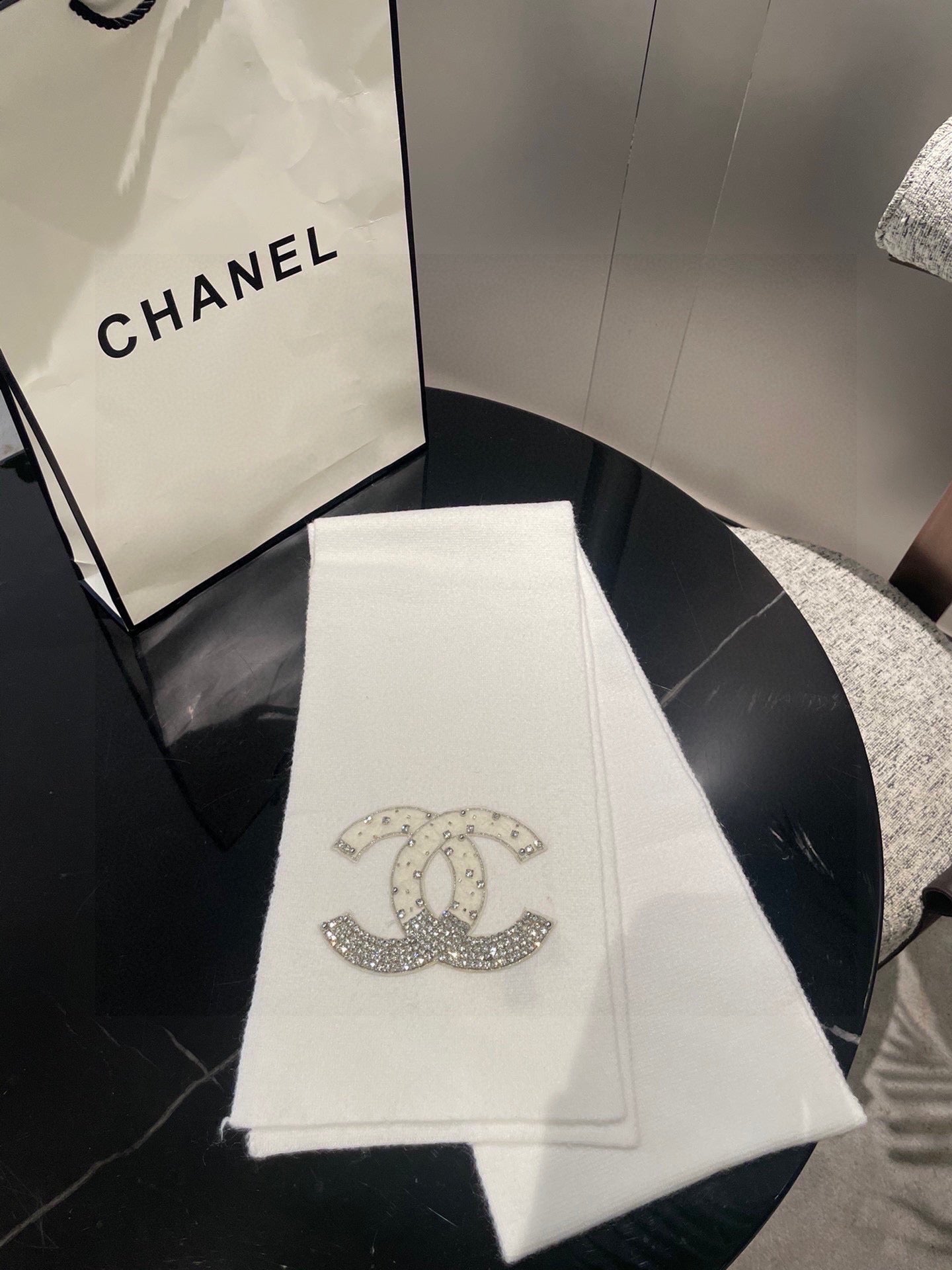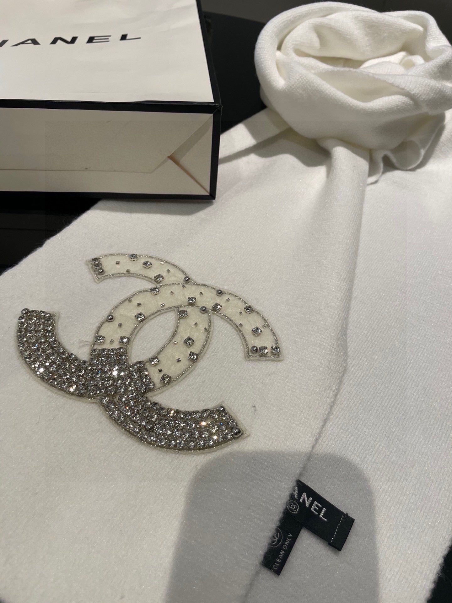 CC Scarf 200 CM In White With Black Logo Cashmere 363602