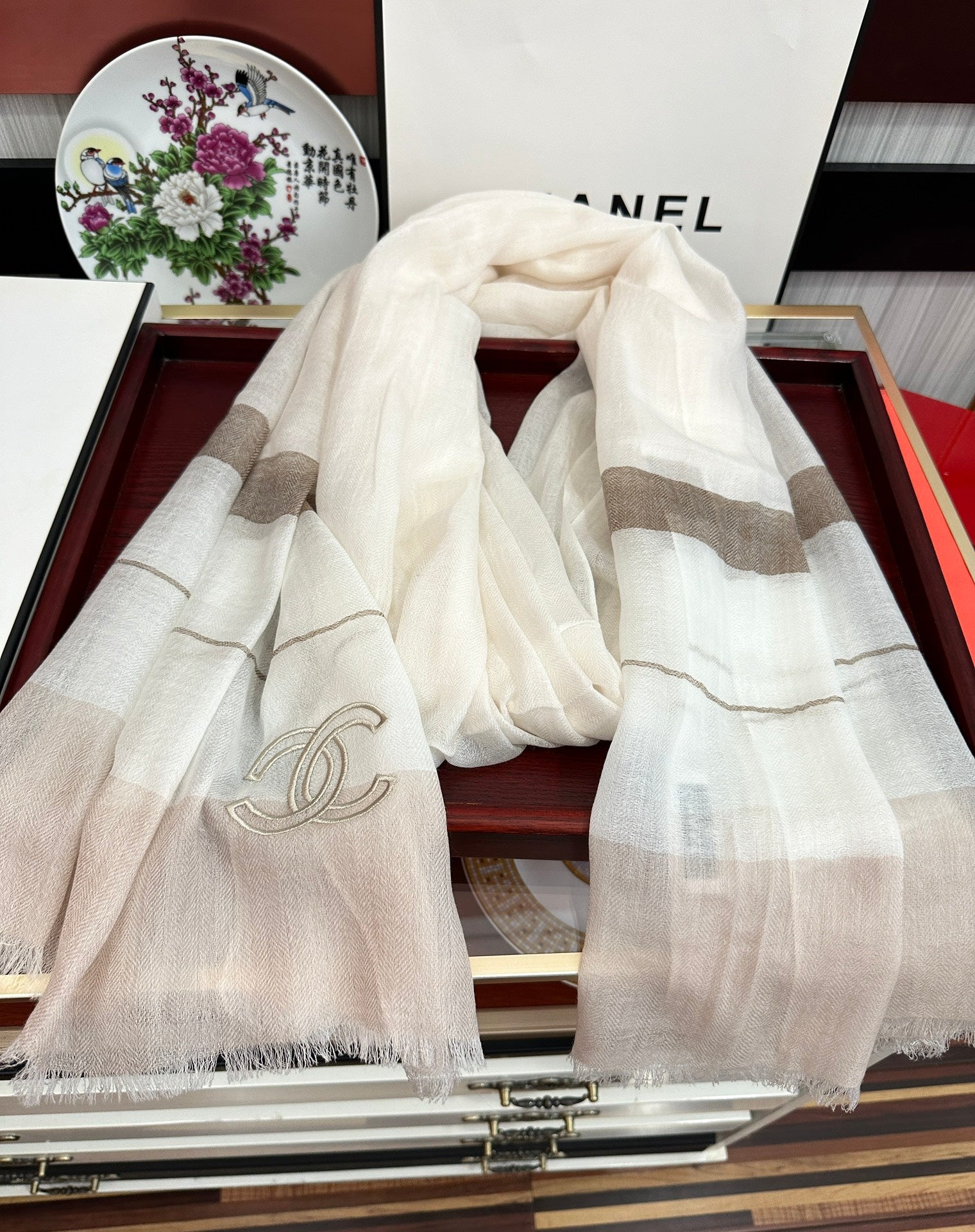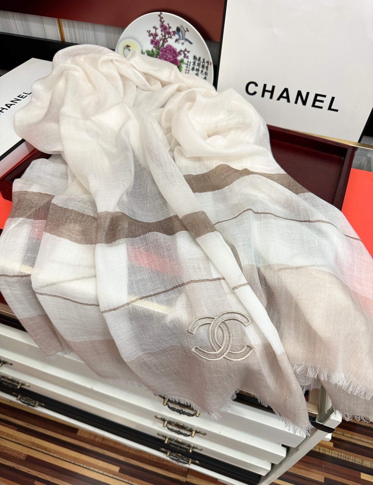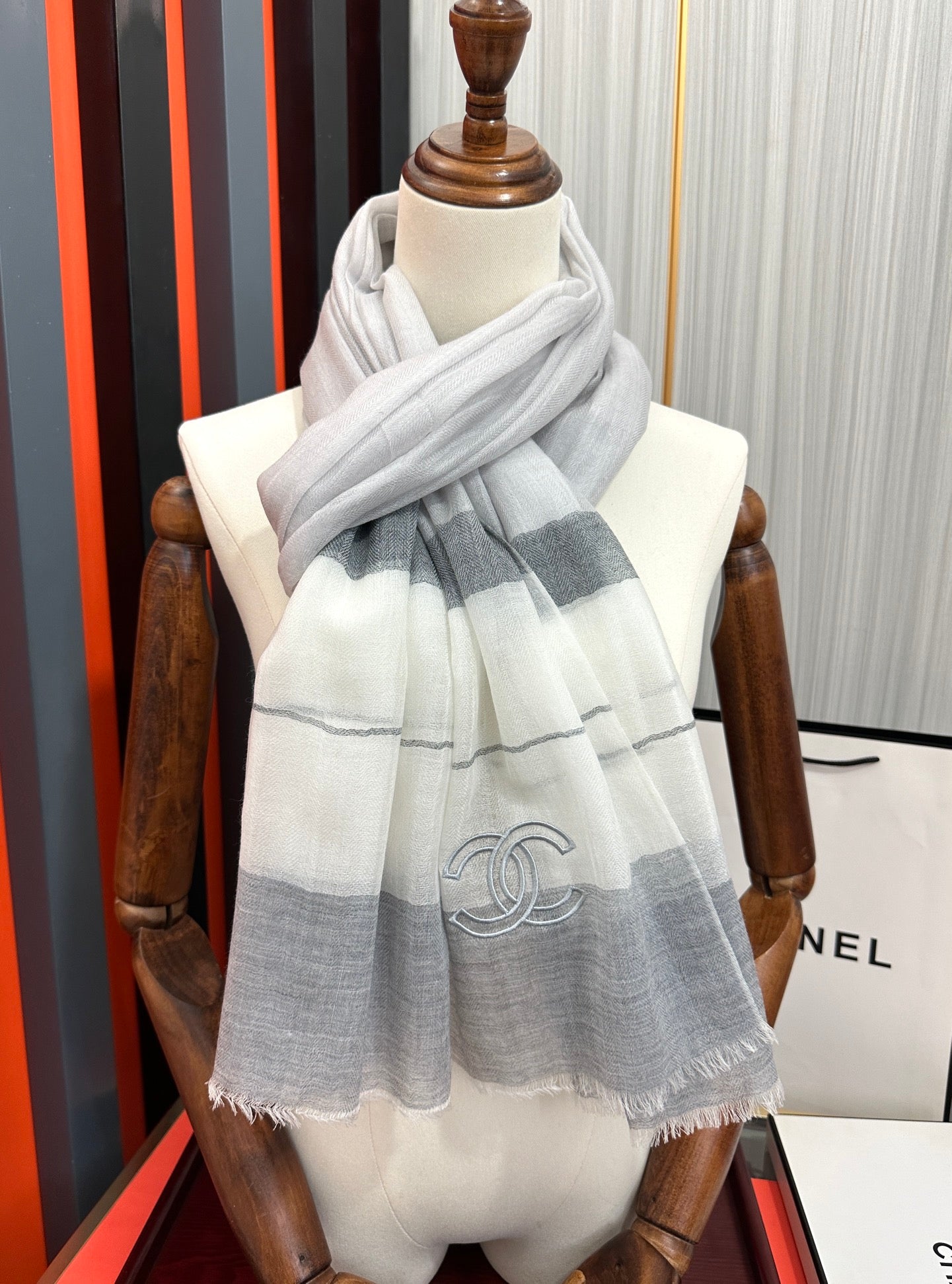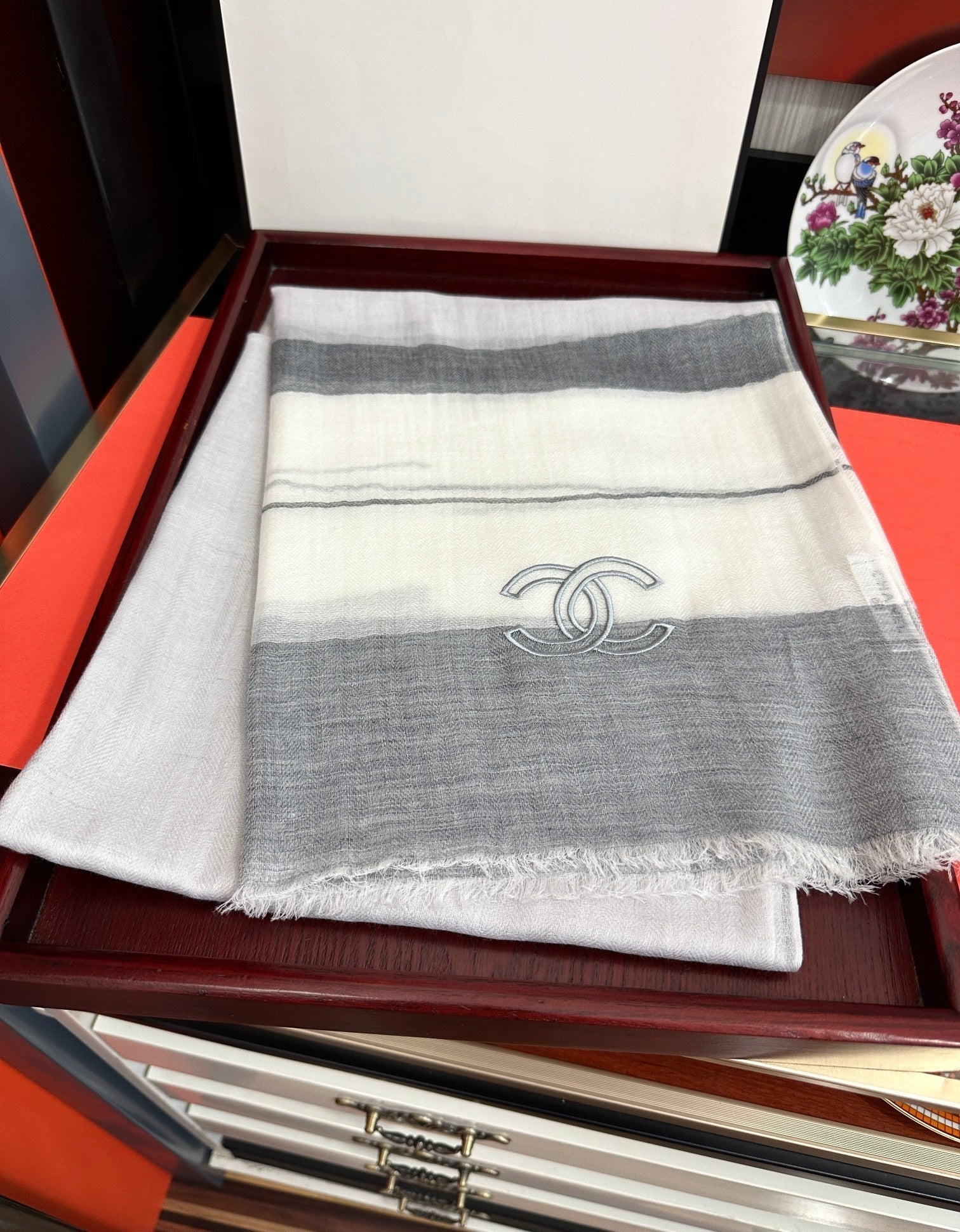 CC Scarf 185 CM White With Black Stripes Cashmere 422920