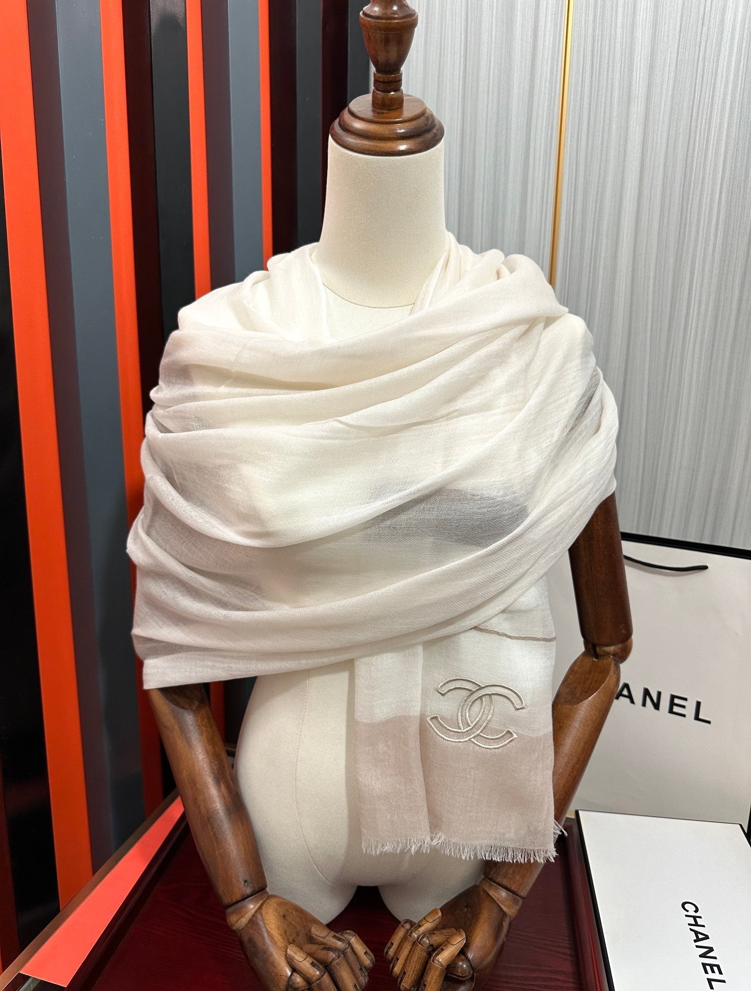 CC Scarf 180 CM In White Rainbow Cashmere Mix Wool And Mulberry Silk 422822