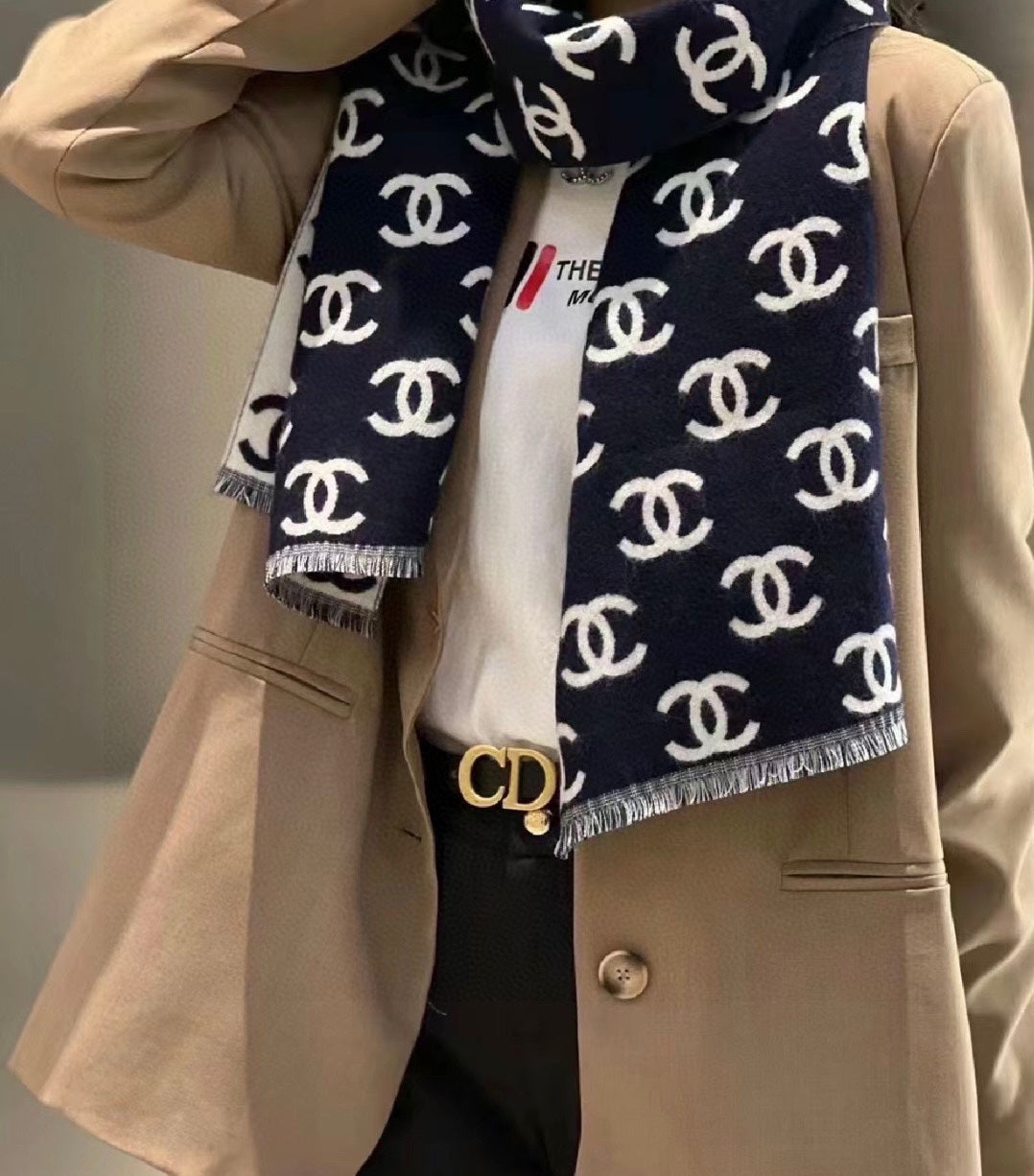 CC Scarf 180 CM In Black Blue Mix Grey Beige Cashmere 381207