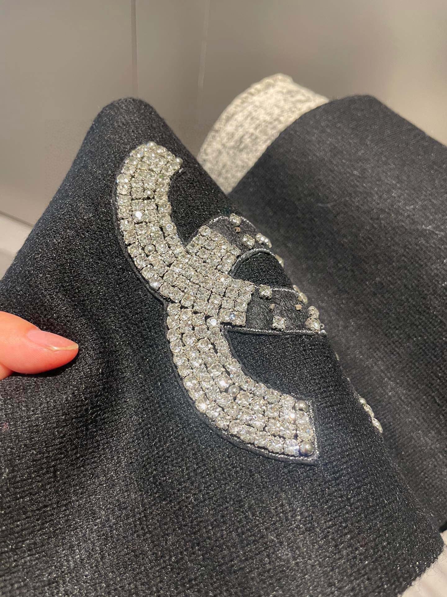 CC Rhinestone-Embellished Shawl 180 CM In Black Cashmere Wool 363687
