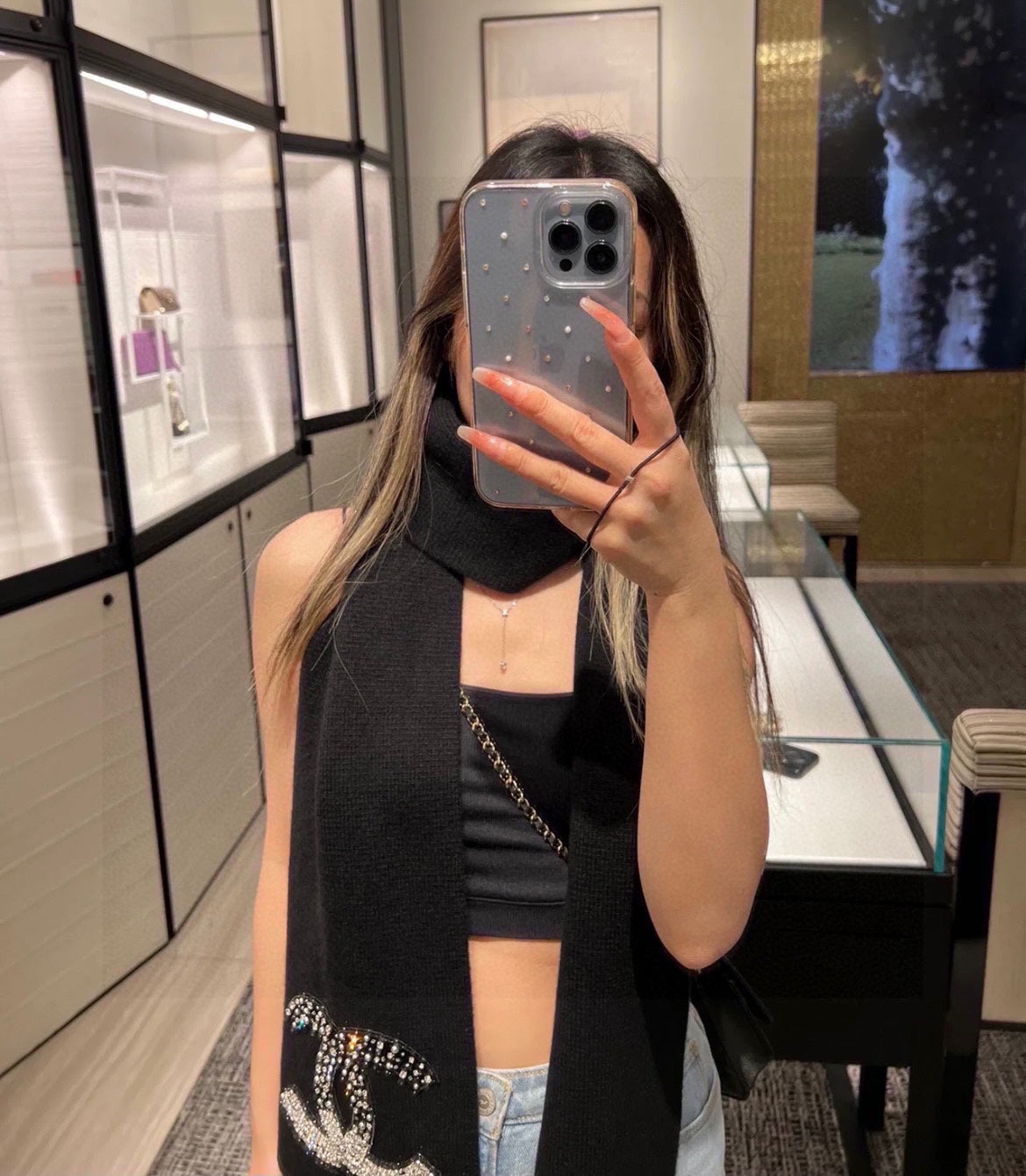 CC Scarf 200 CM In Black Mix White Cashmere 422791