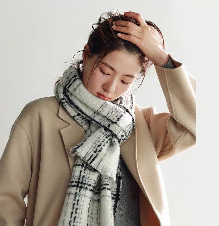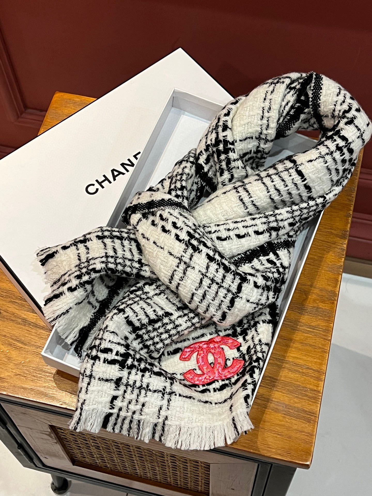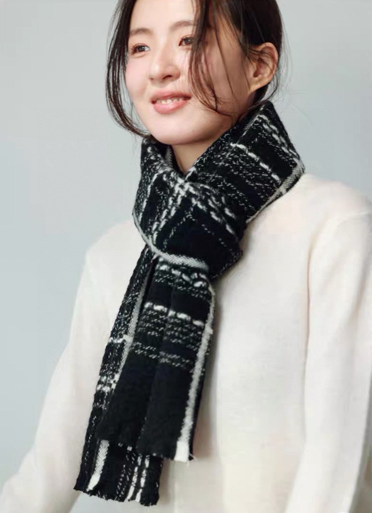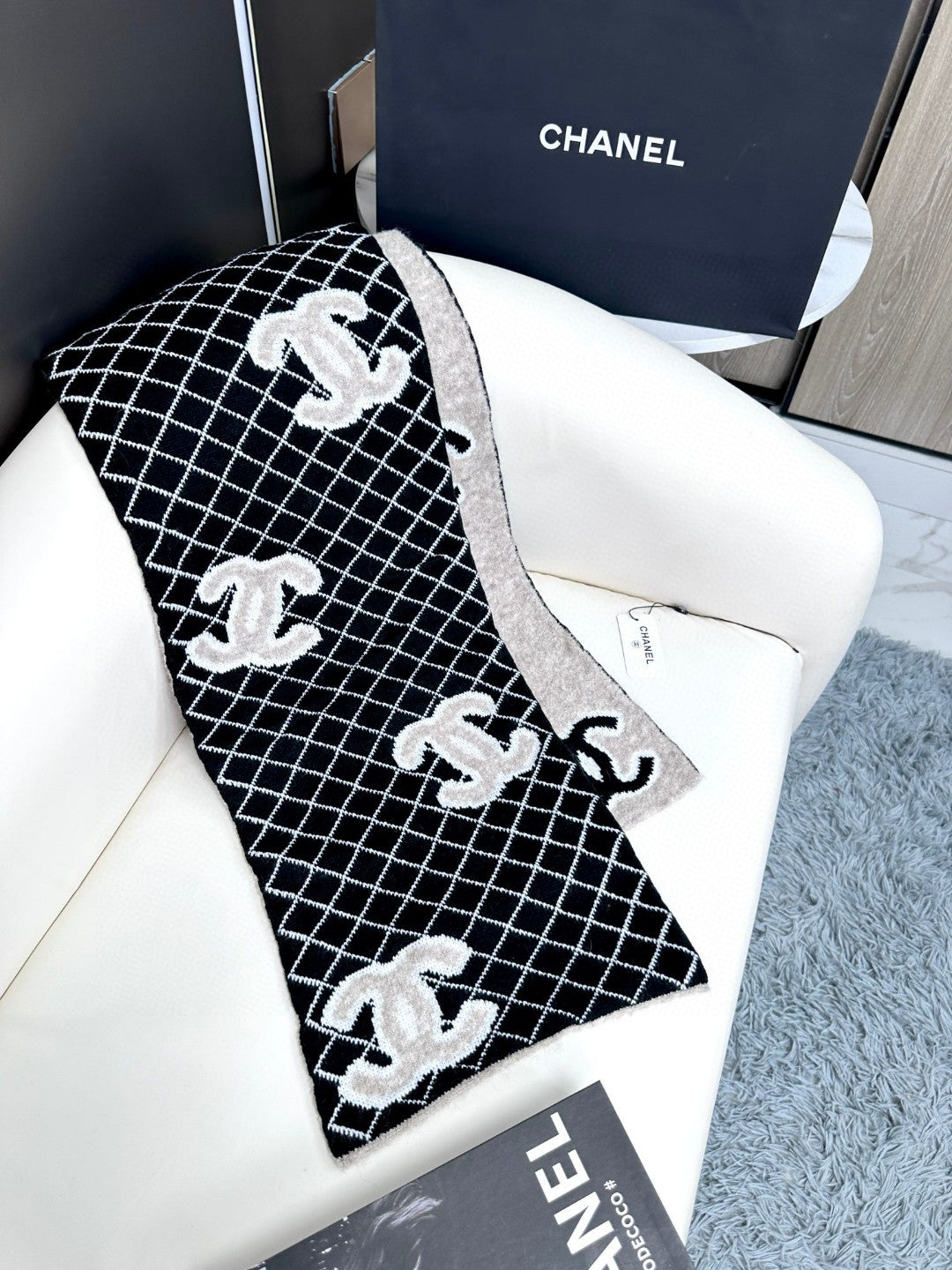 CC Scarf 184 CM In Black Mix White Wool Jacquard 424860