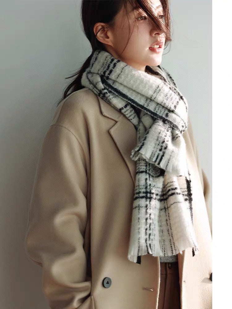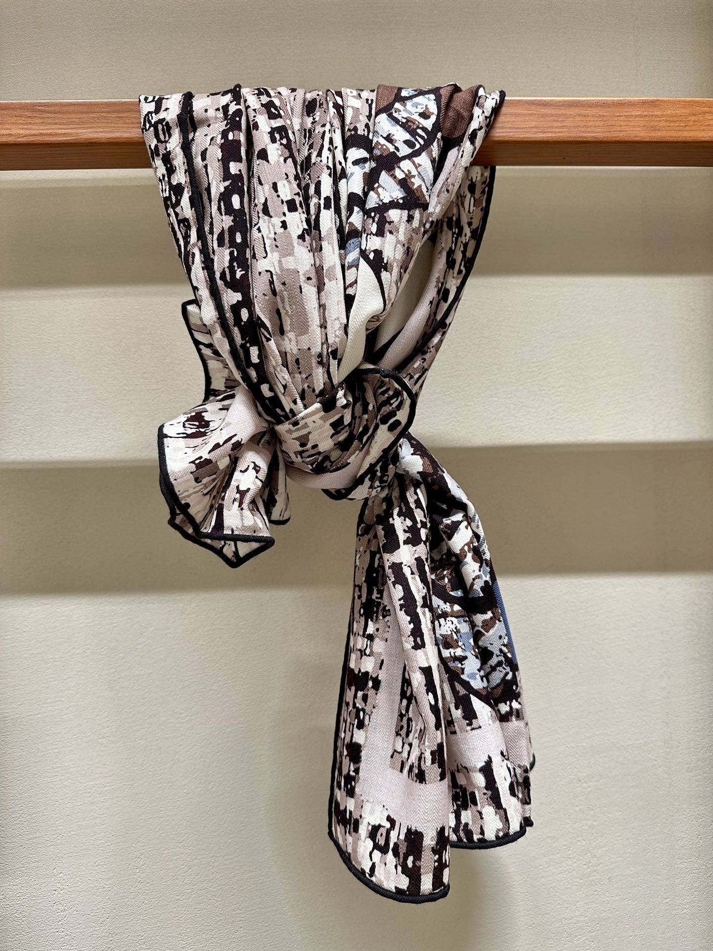 CC Scarf 184 CM In Milky Brown Mix White Wool Jacquard 424859