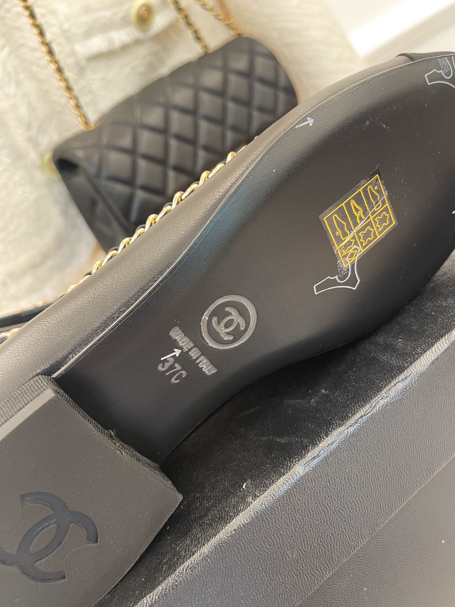CC Ballet Flats 25mm Black Bow Tie Chain Lambskin