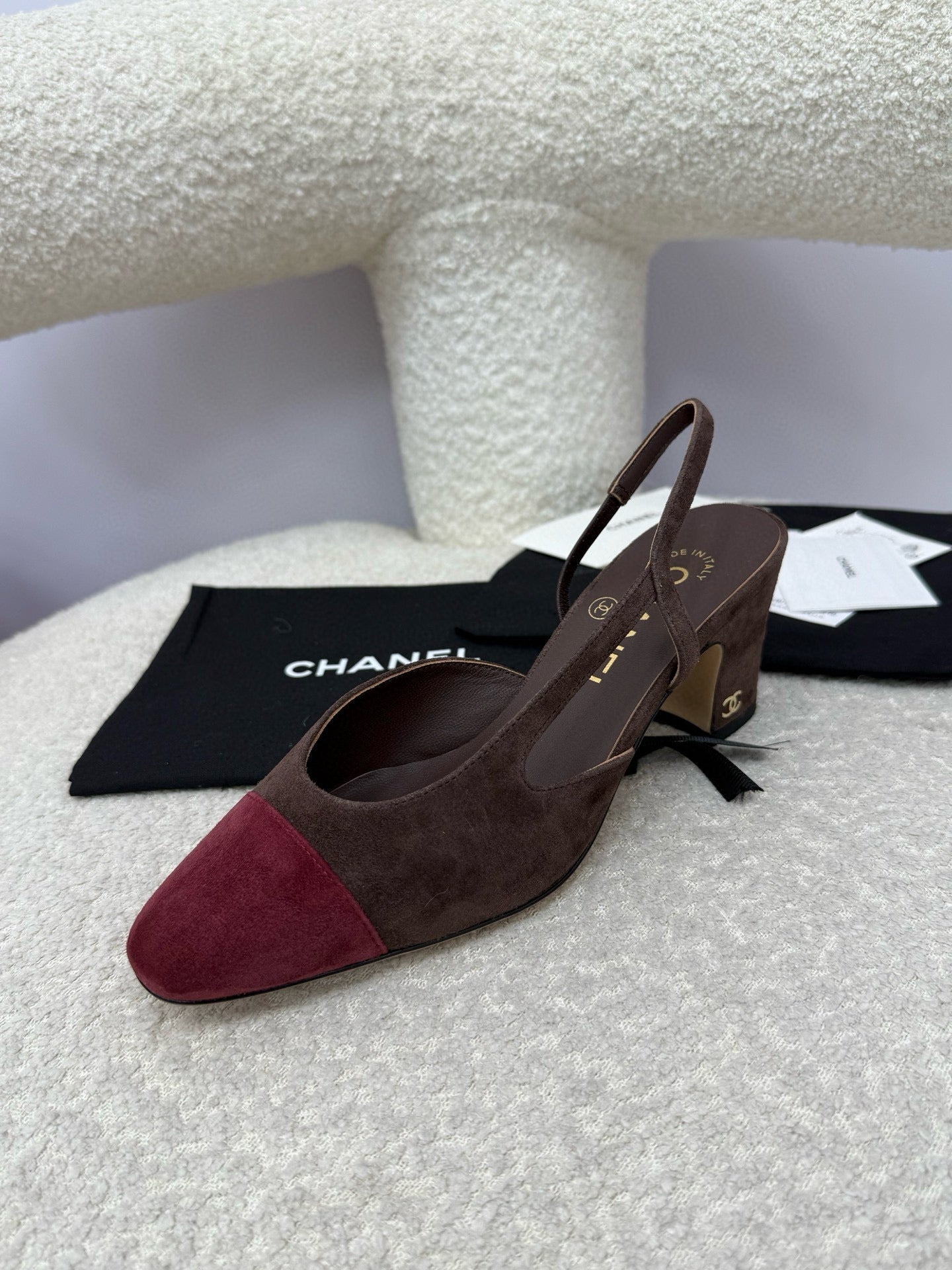 CC 24P SLINGBACKS 95MM BEIGE BLACK LAMBSKIN