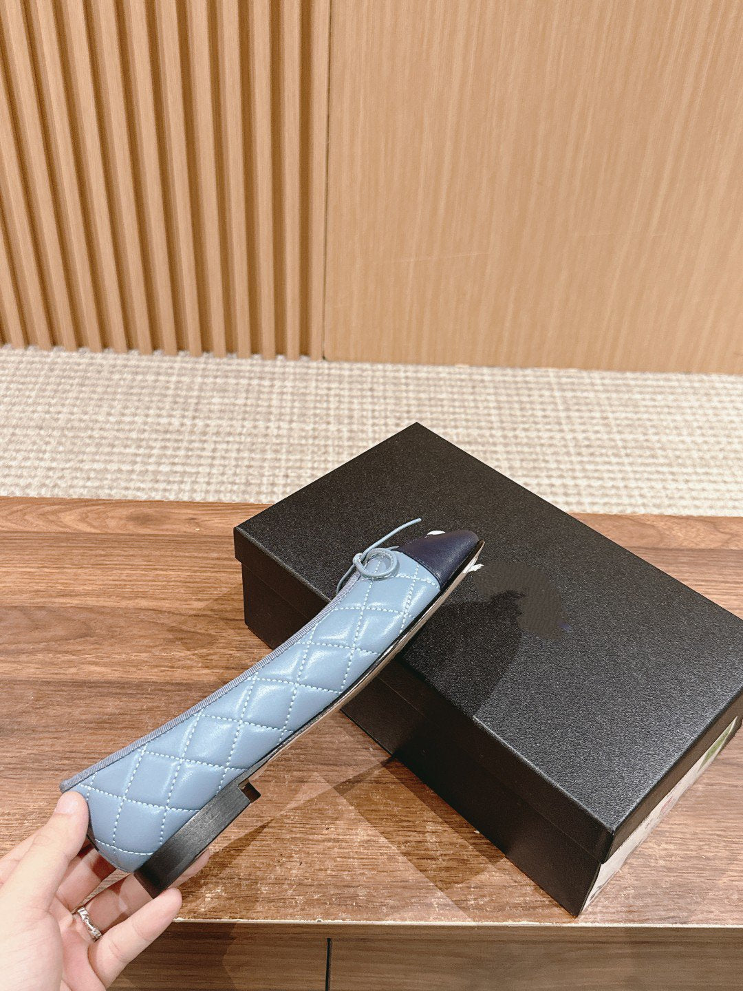 ballet flat baby blue quilted lambskin