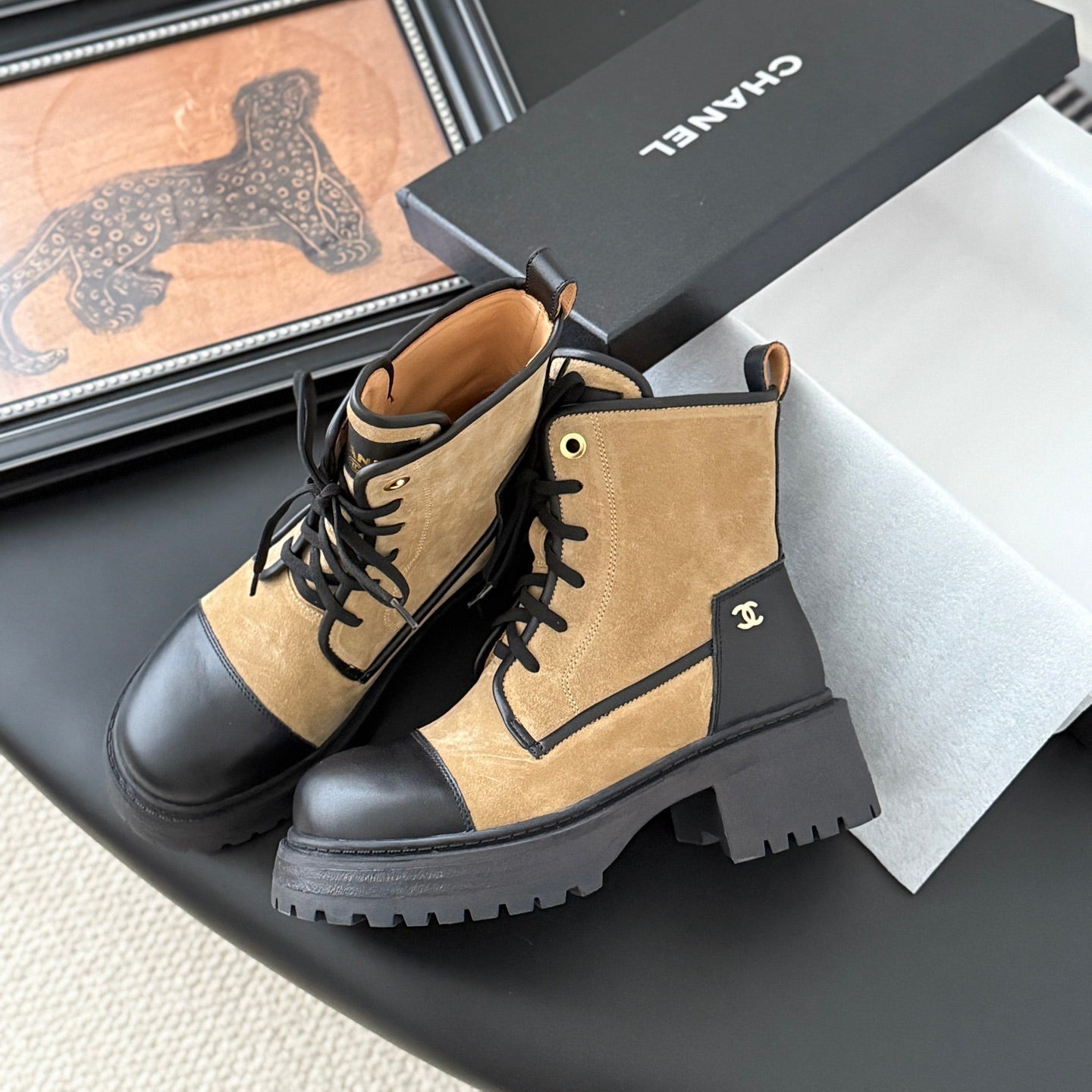 CC 25 ankle boots beige black suede sheepskin 458765