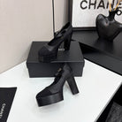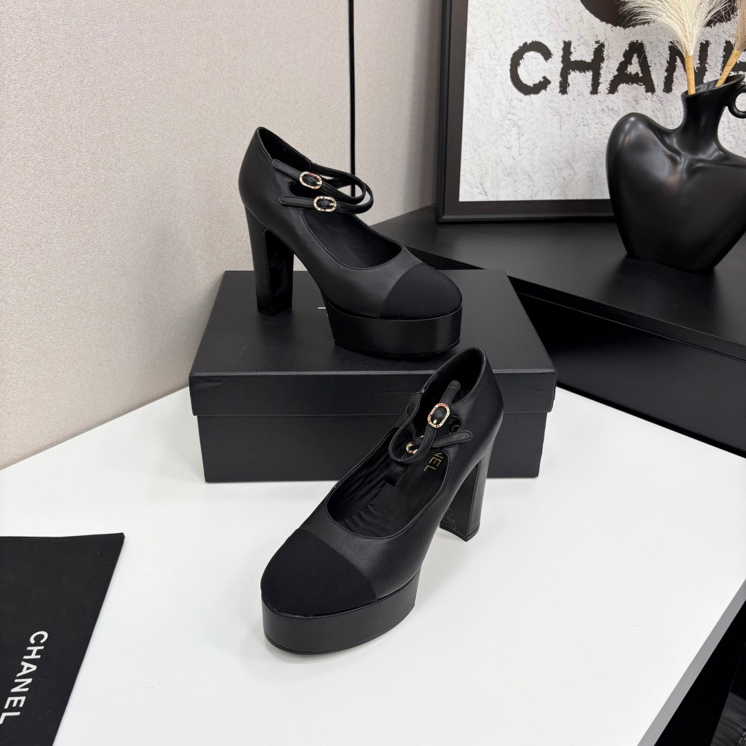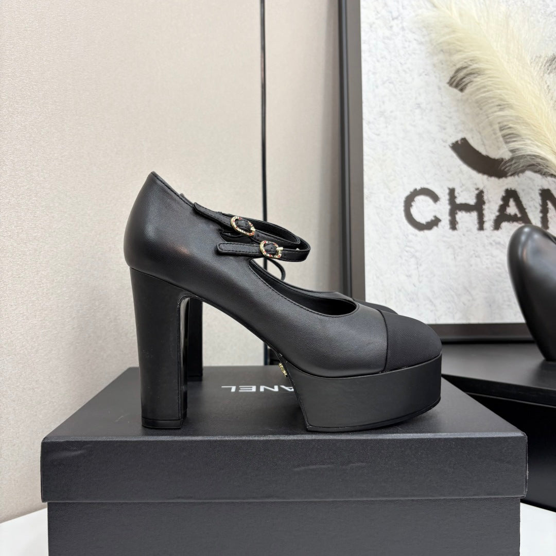 CC 25S Mary Jane Platform 11cm Black Calfskin Grosgrain
