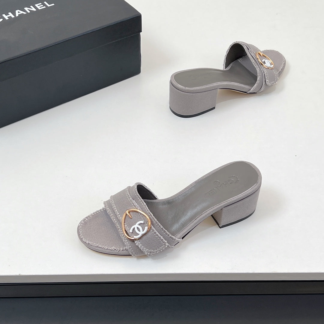 CC Mule Sandals In Grey Canvas Fabric 149438