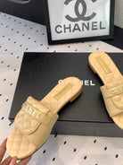 CC Slippers In Beige Quilted Cowhide 147026