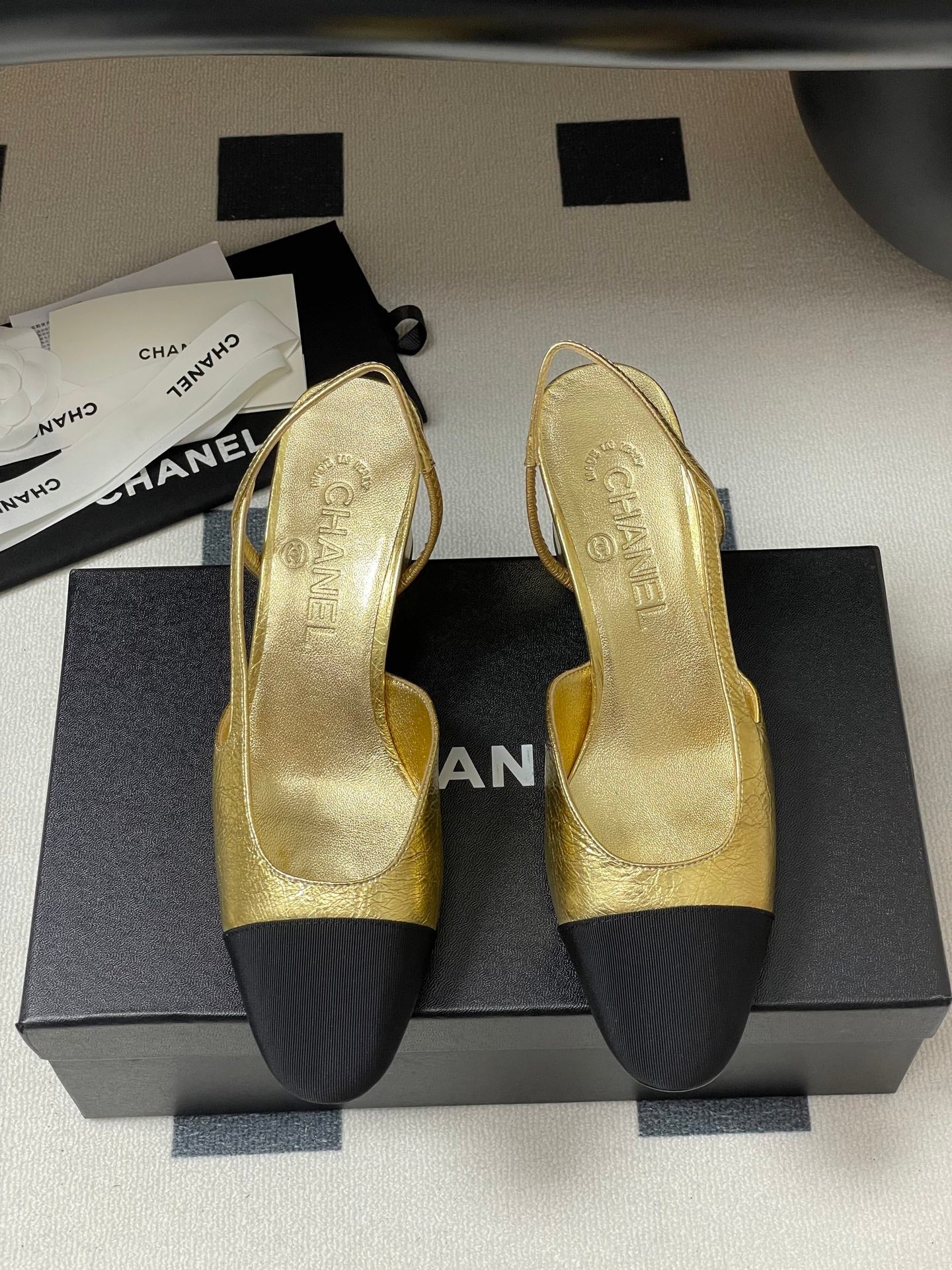 Chanel 2025 Slingback 65mm Gold Metalic Lambskin