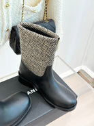 Chanel 25 Four-Leaf Clover Pearls Double C Boots Black Grey Woven Sheepskin 465404