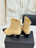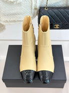 Chanel Double C Colorblock Heel Boot Beige Sheepskin 465414