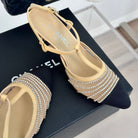 Crystal Flat High Heel Sandals Beige Cream