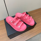 dad sandals dark pink triple strap lambskin mules