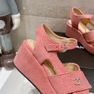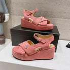 Wedge Open-Toe High Heel Sandals Light Pink Sheepskin