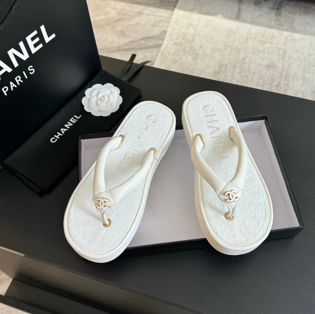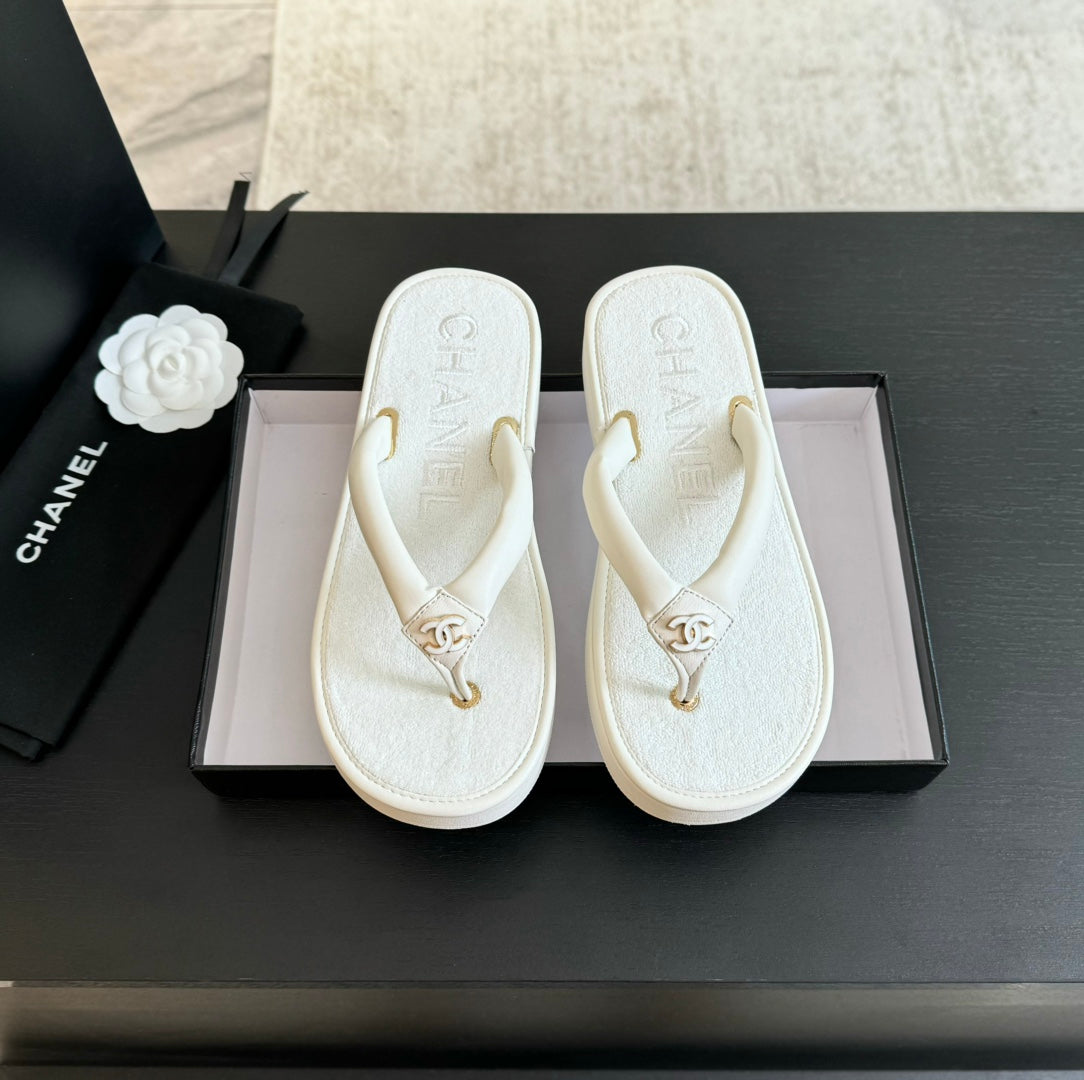 Platform Peep-Toe Sandals Beige Cream Lambskin