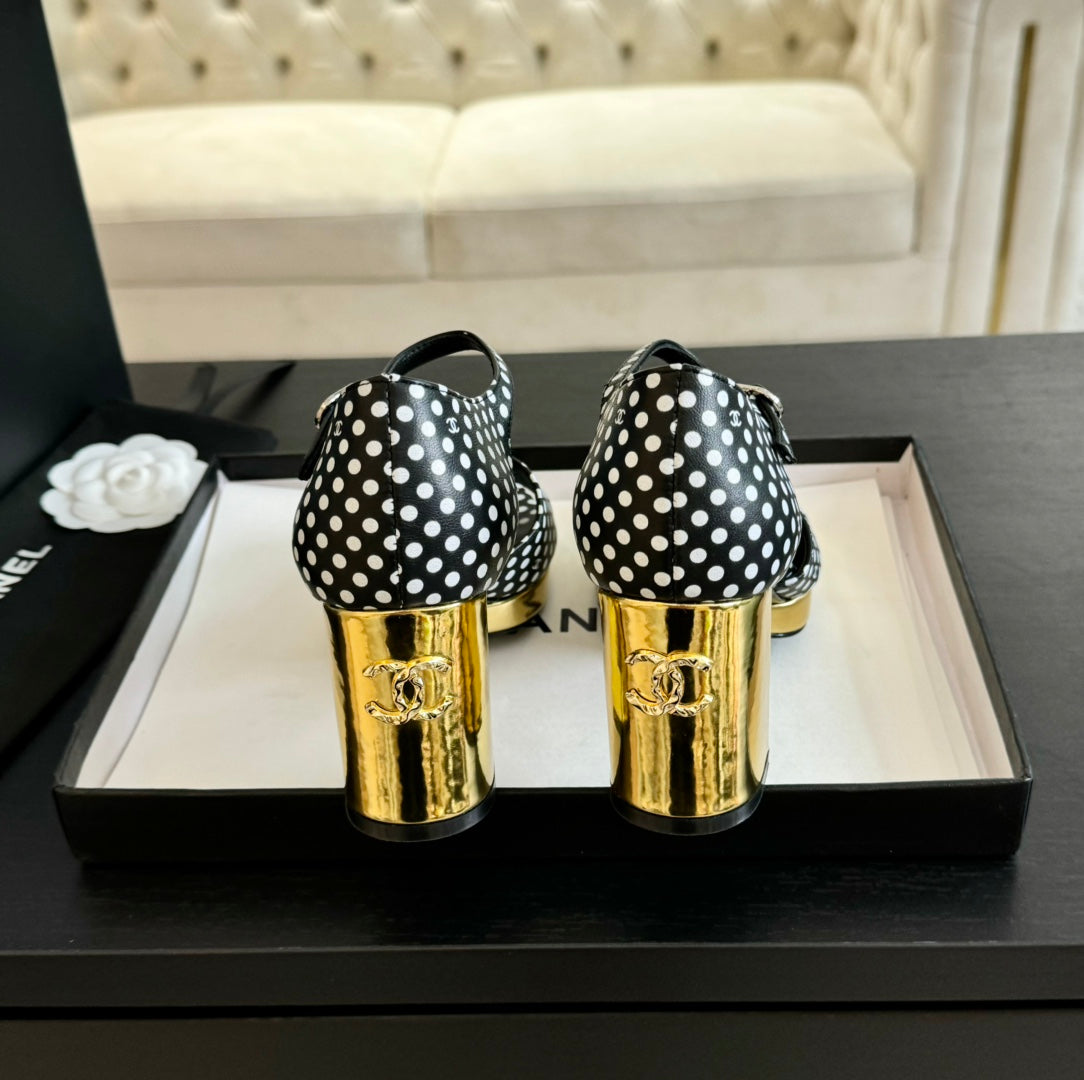 Double Strap Chunky Heel Mary Jane Shoes Black/White Caro