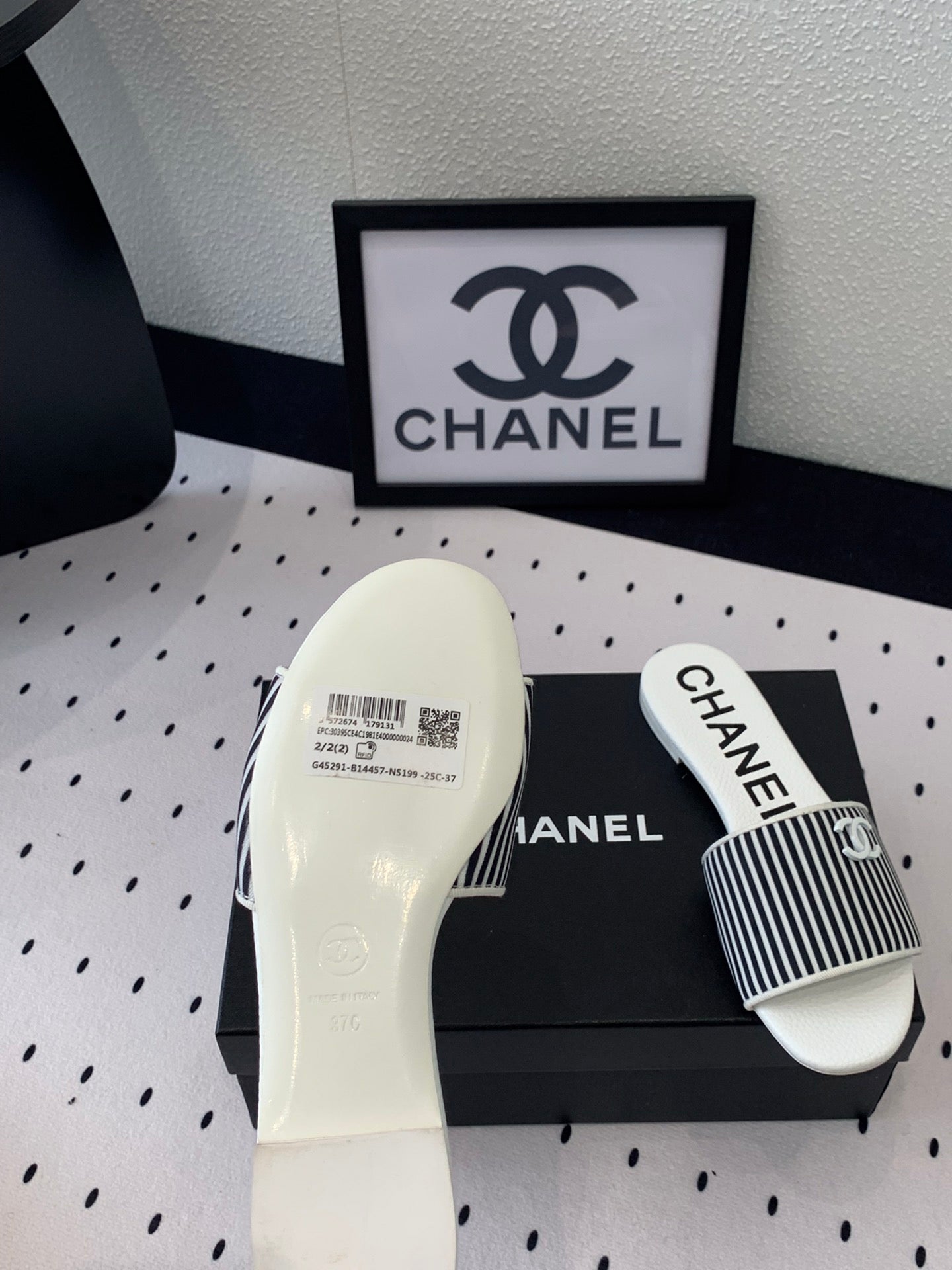 mule sandal striped black white