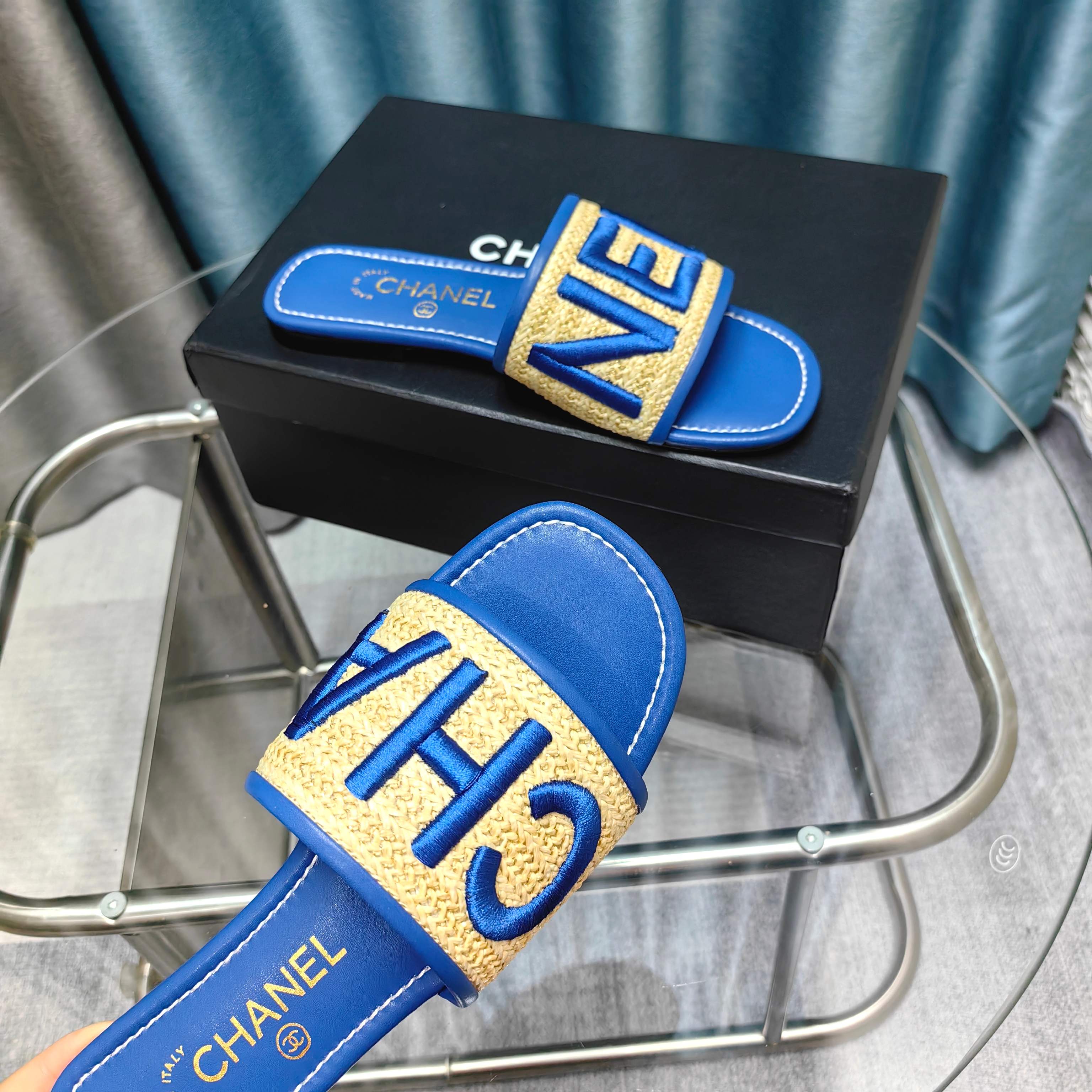 CC 25 Mule Raffia Strass