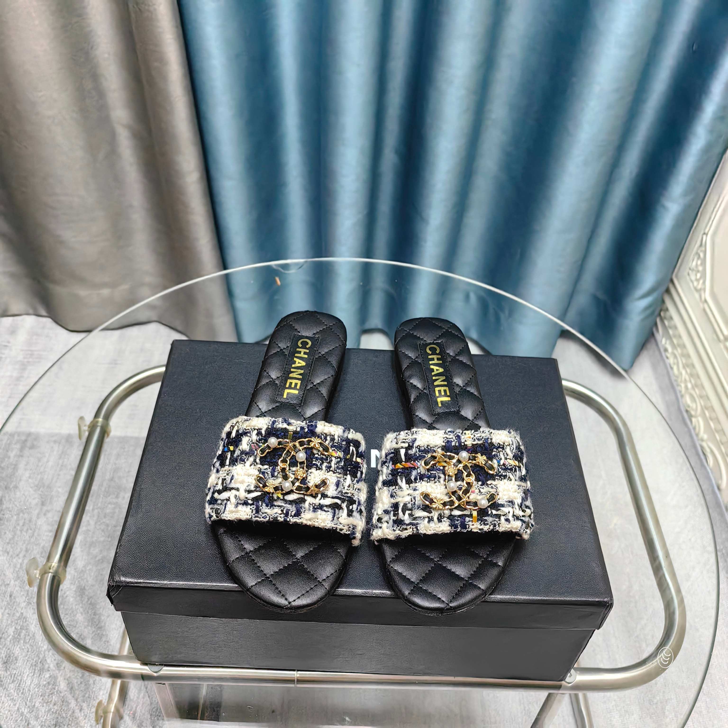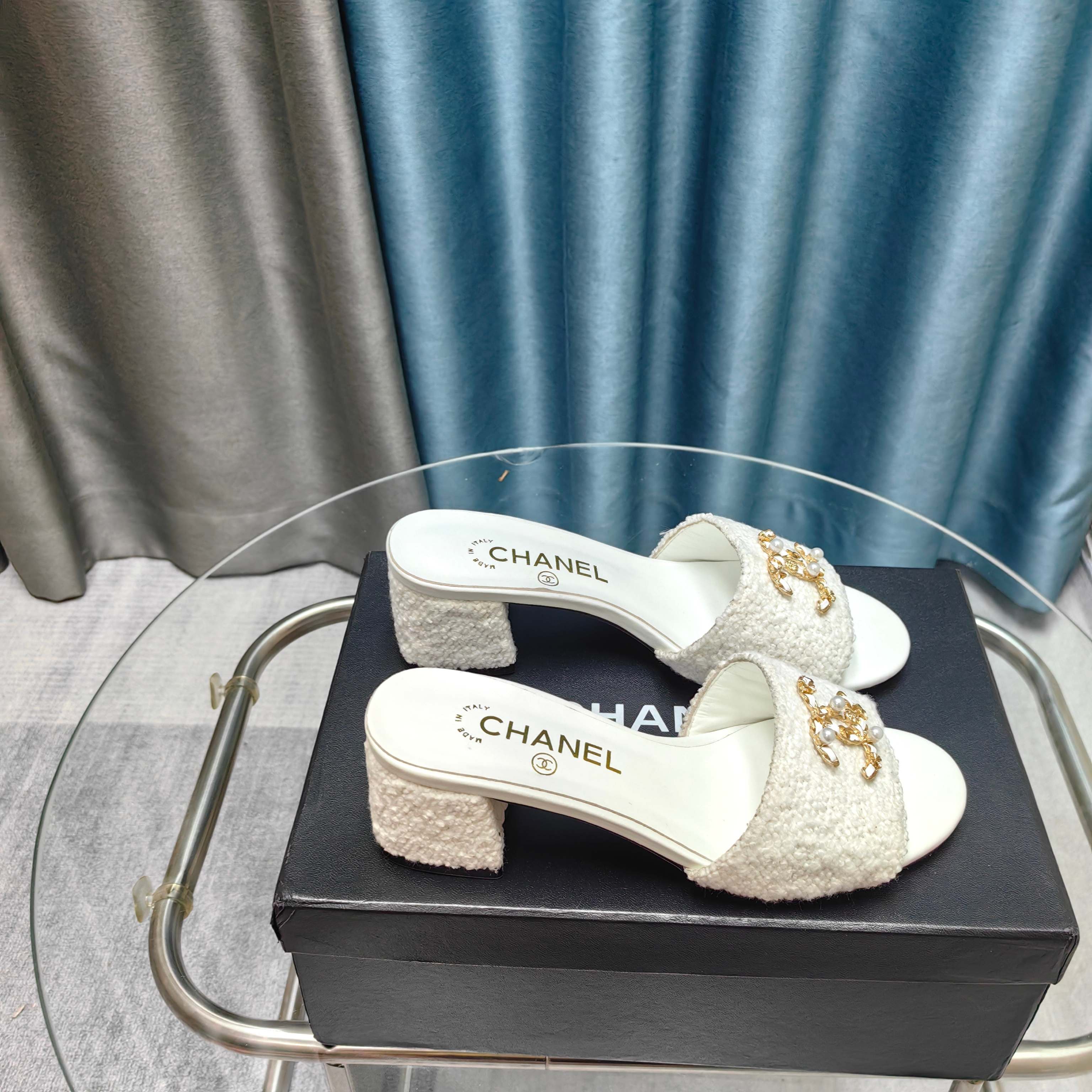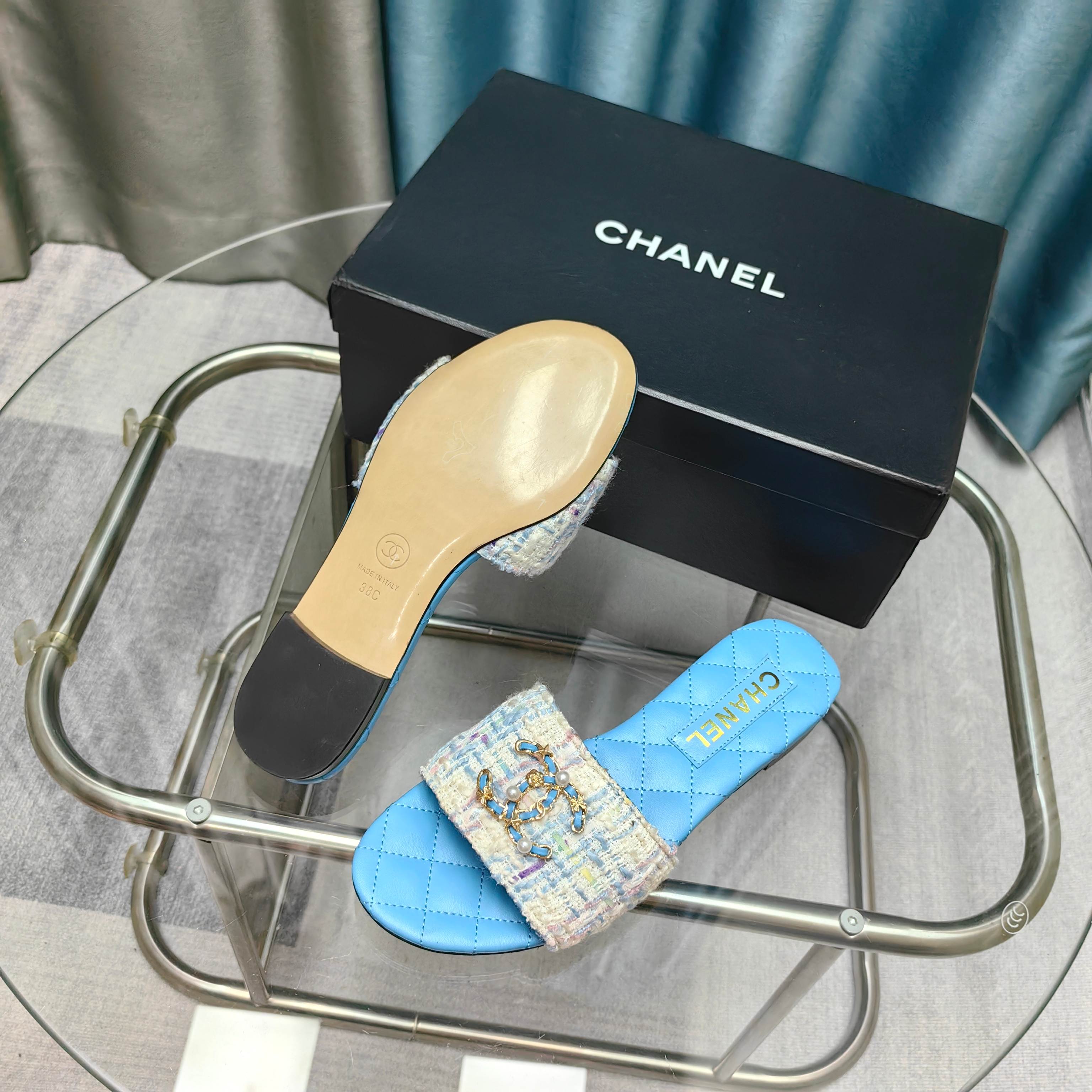 CC 25 Mules Flat Pearl Cord and Lambskin 270770