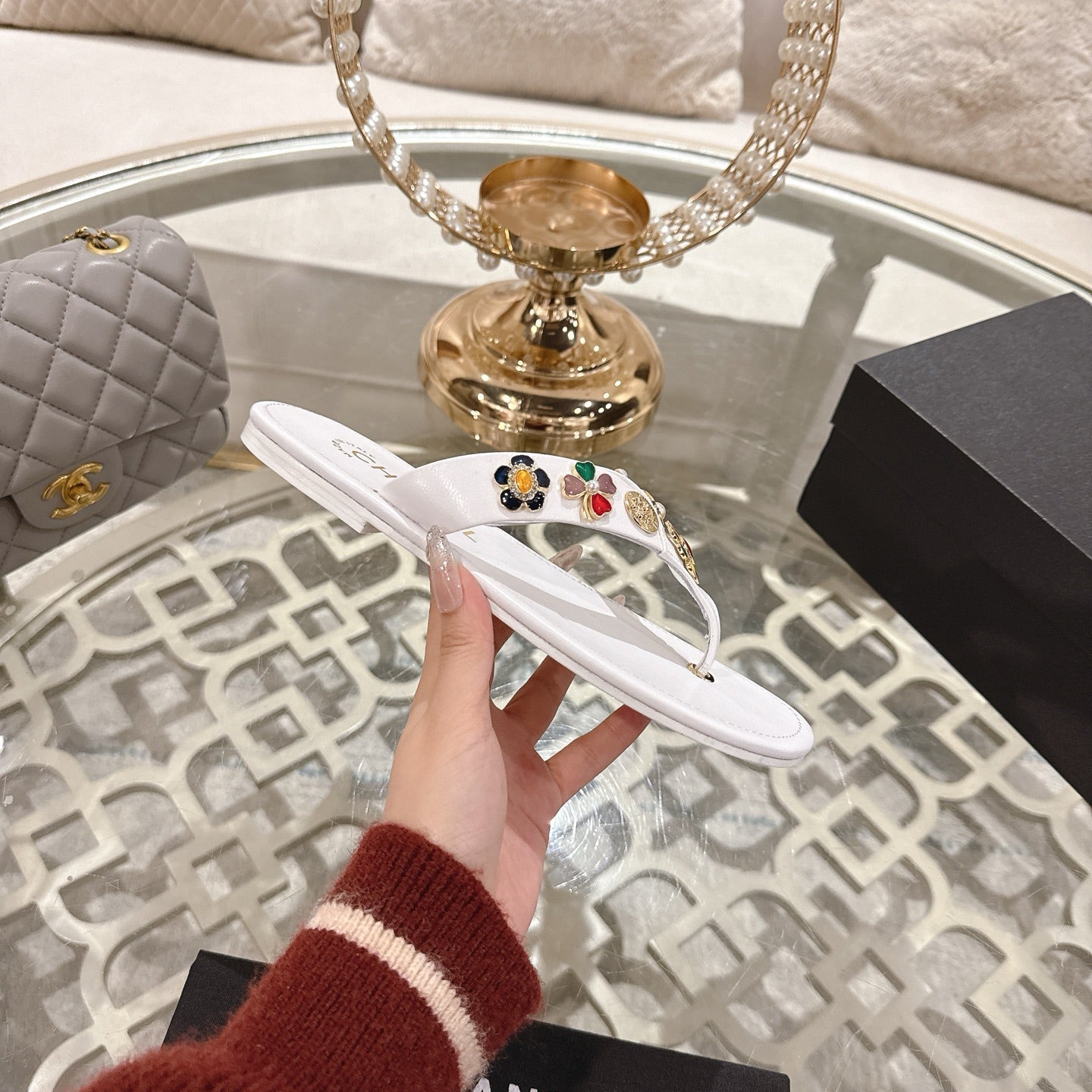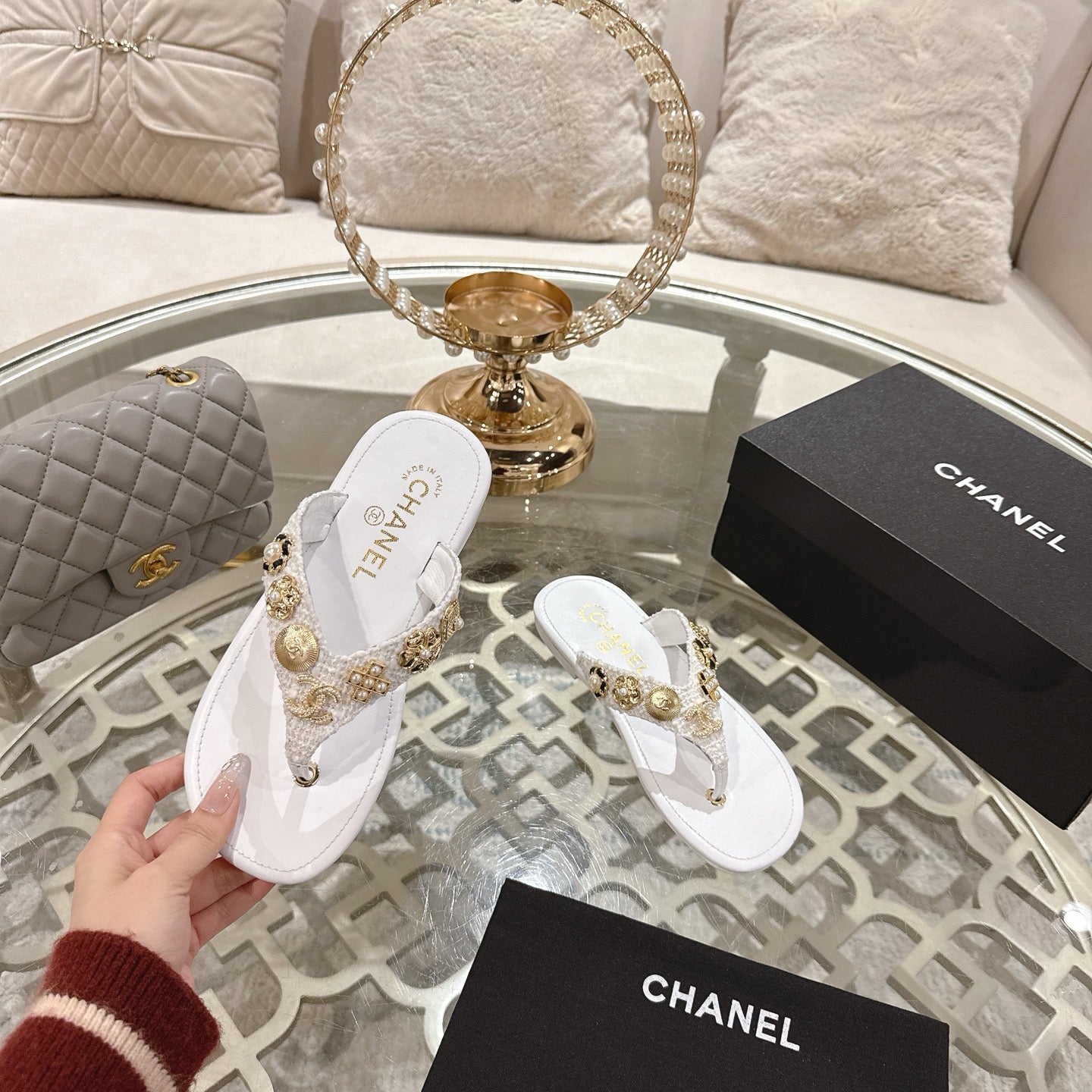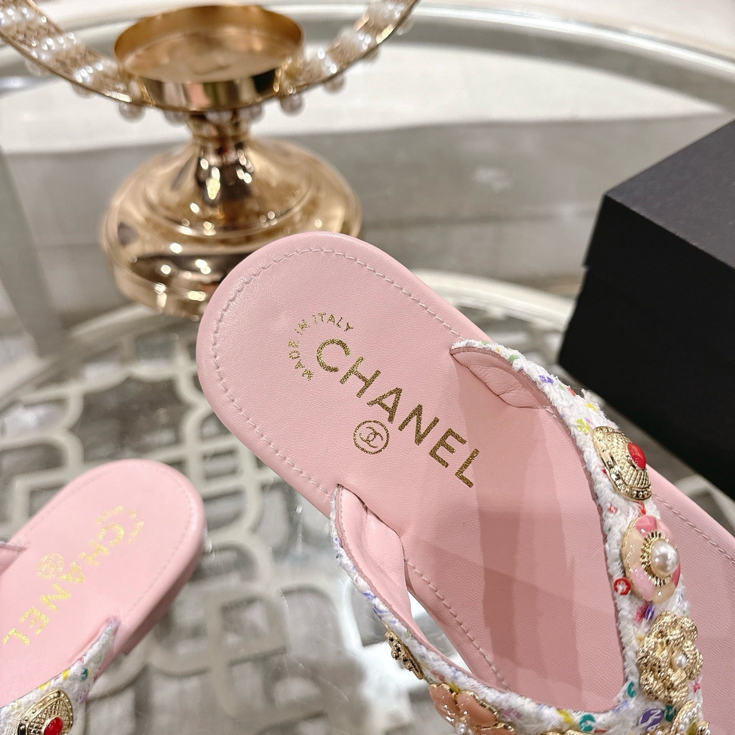 CC 25 Mules Flat Pearl Cord and Lambskin 270770