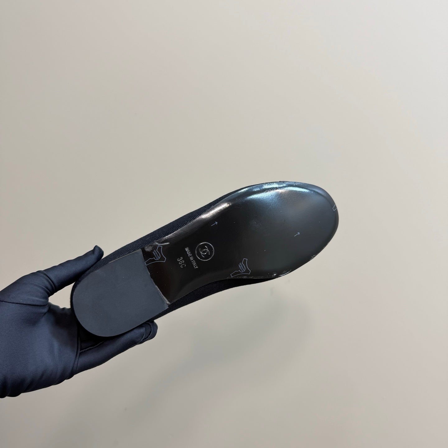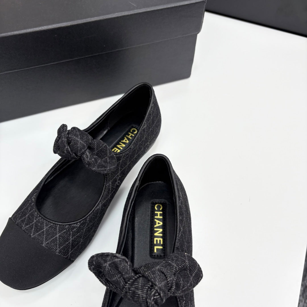 CC 25 Ballet Flat Black Grey Quilted Denim