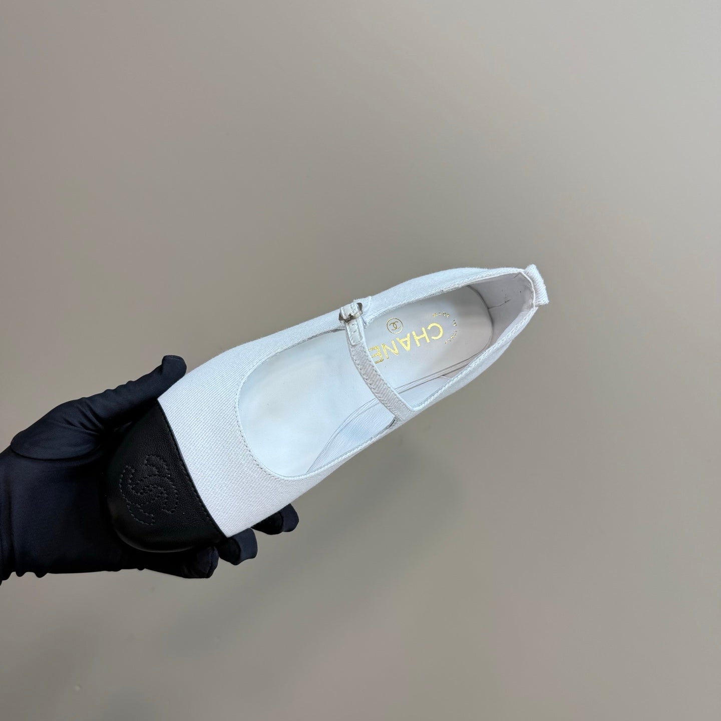 CC 25 Mary Jane Flat White Leather with Fabric 239409