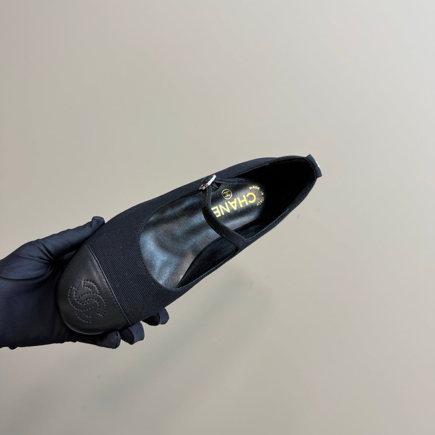CC 25 Mary Jane Flat Black Leather with Fabric 239412