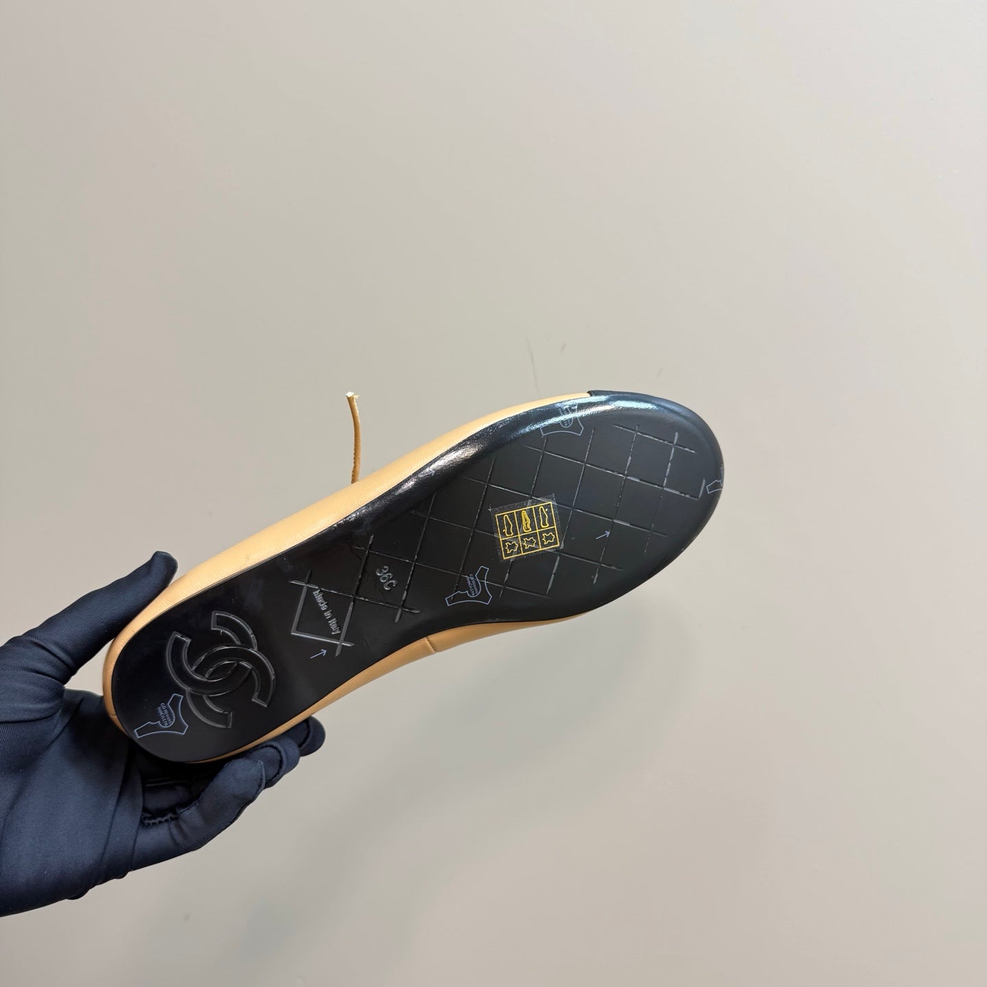 CC 25 Mary Jane Flat Beige Cream Leather with Fabric 239407
