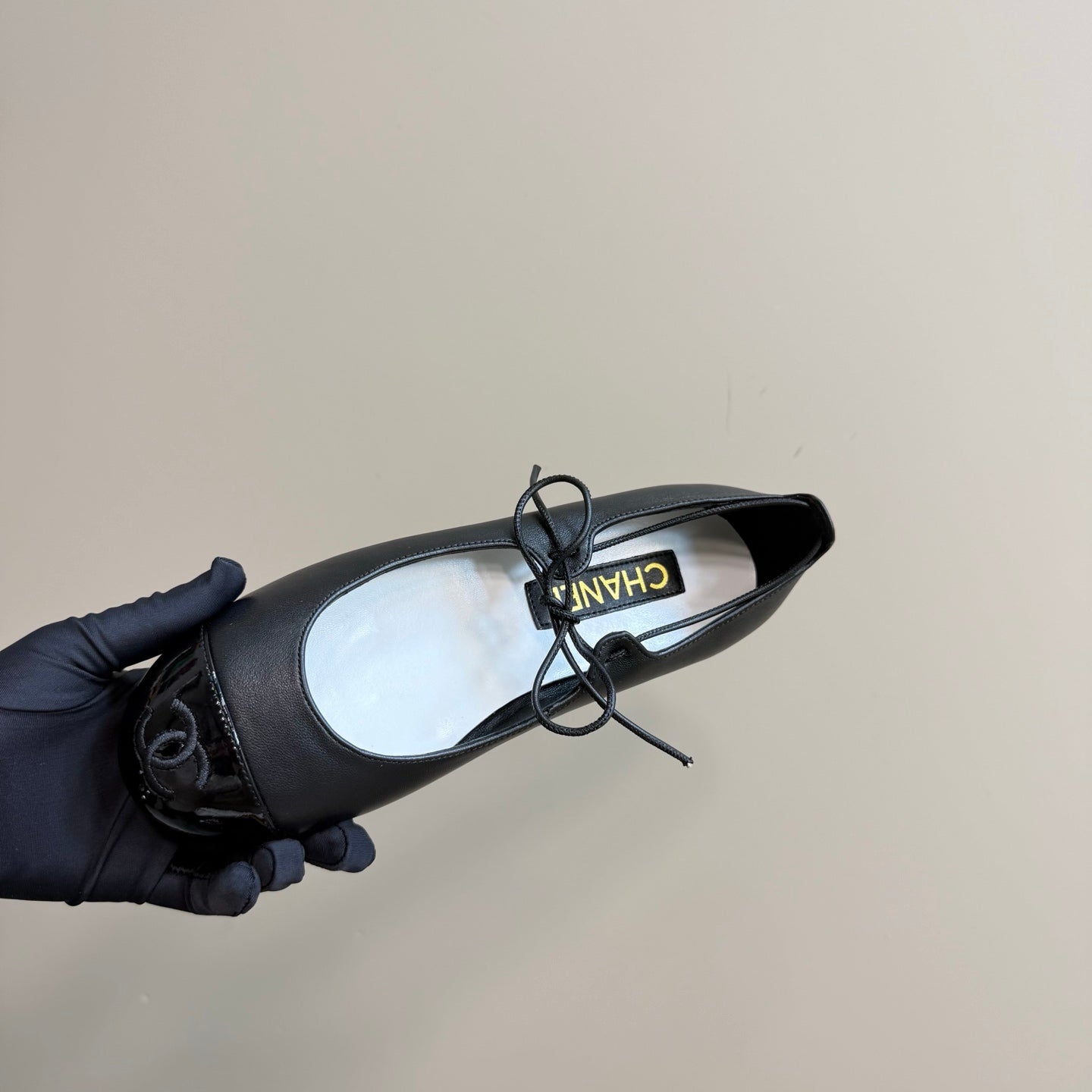 CC 25 Mary Jane Flat Black Leather with Patent Leather 239410