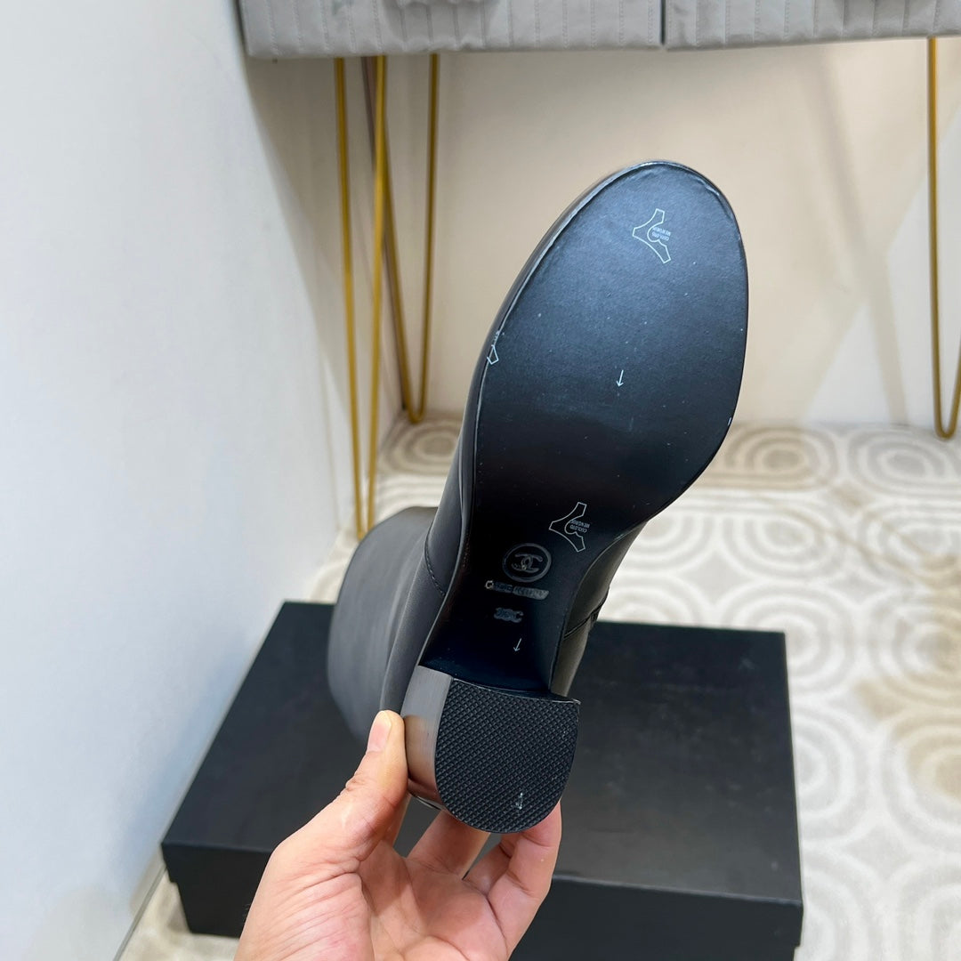 Chanel 25 Platform Thick Heel Shoe White Black Sheepskin