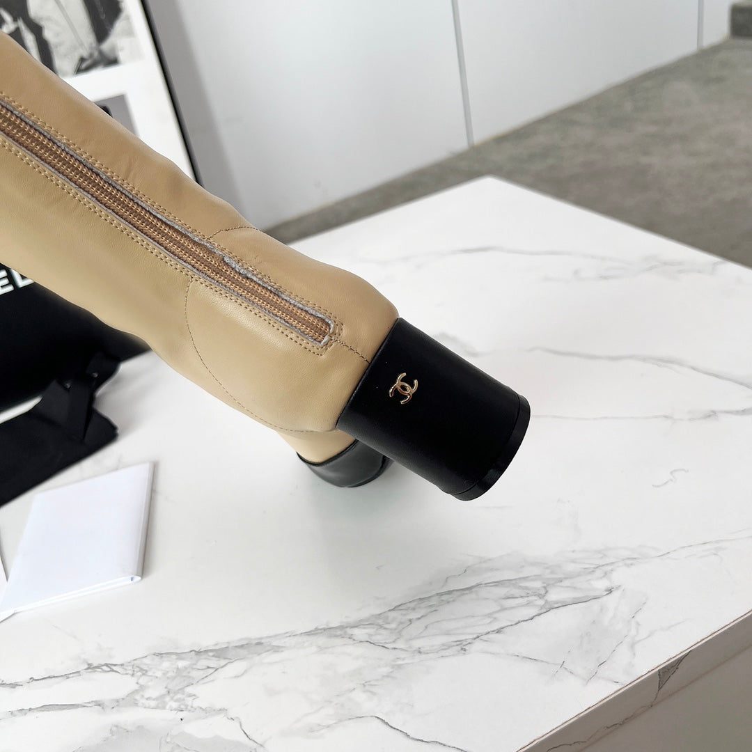 Chanel Boot 25 Beige mix Black Cowhide Suede 175368