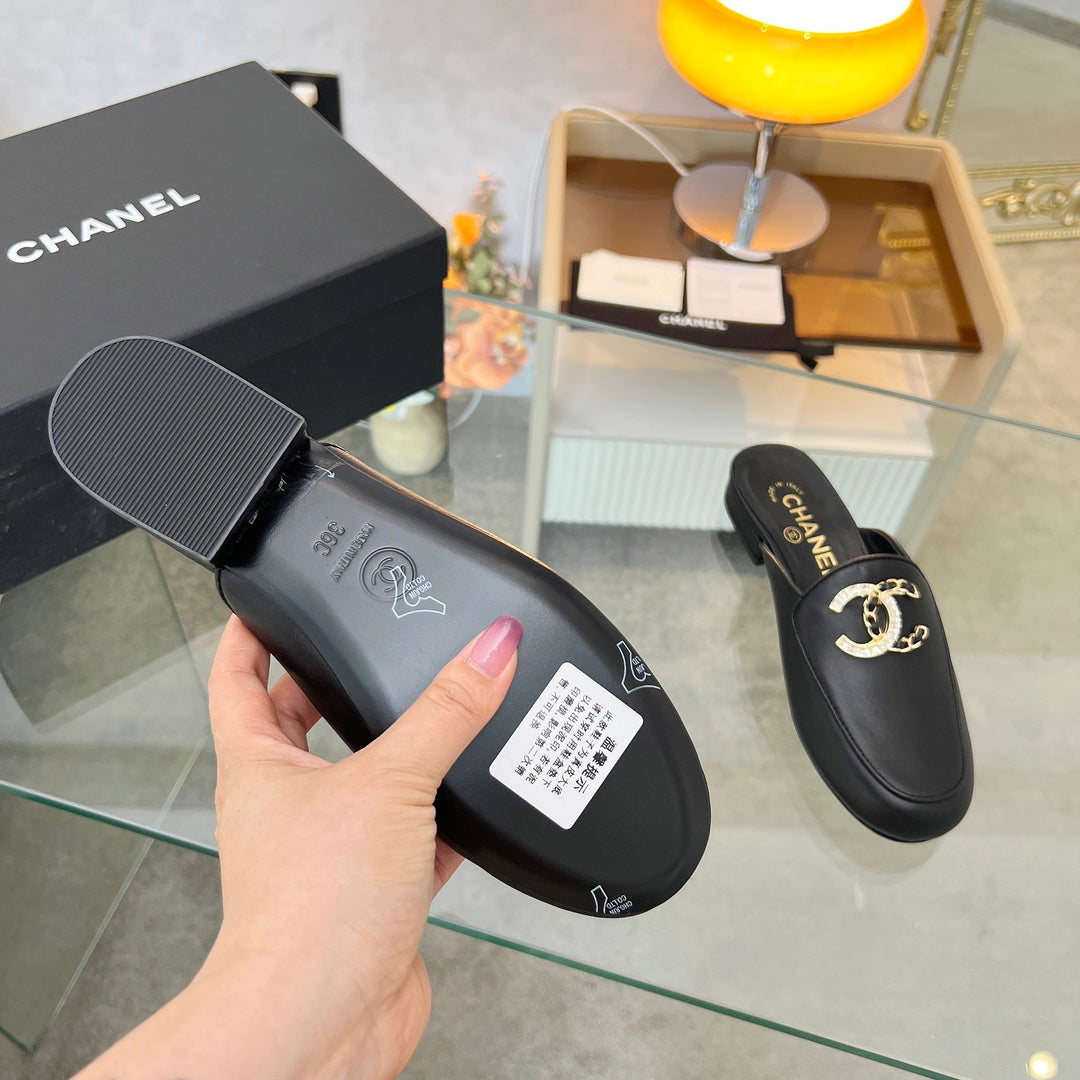 Chanel 25 Slipper black Smooth Lambwool 465602