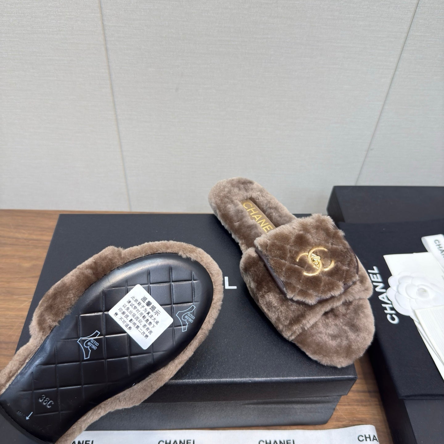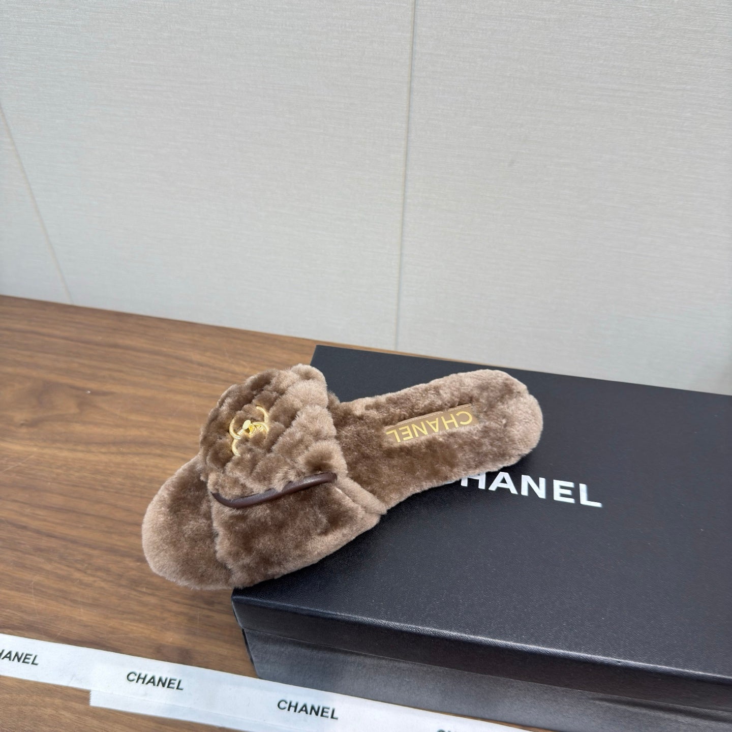 Chanel 25 Slipper Brown Smooth Lambwool 465600