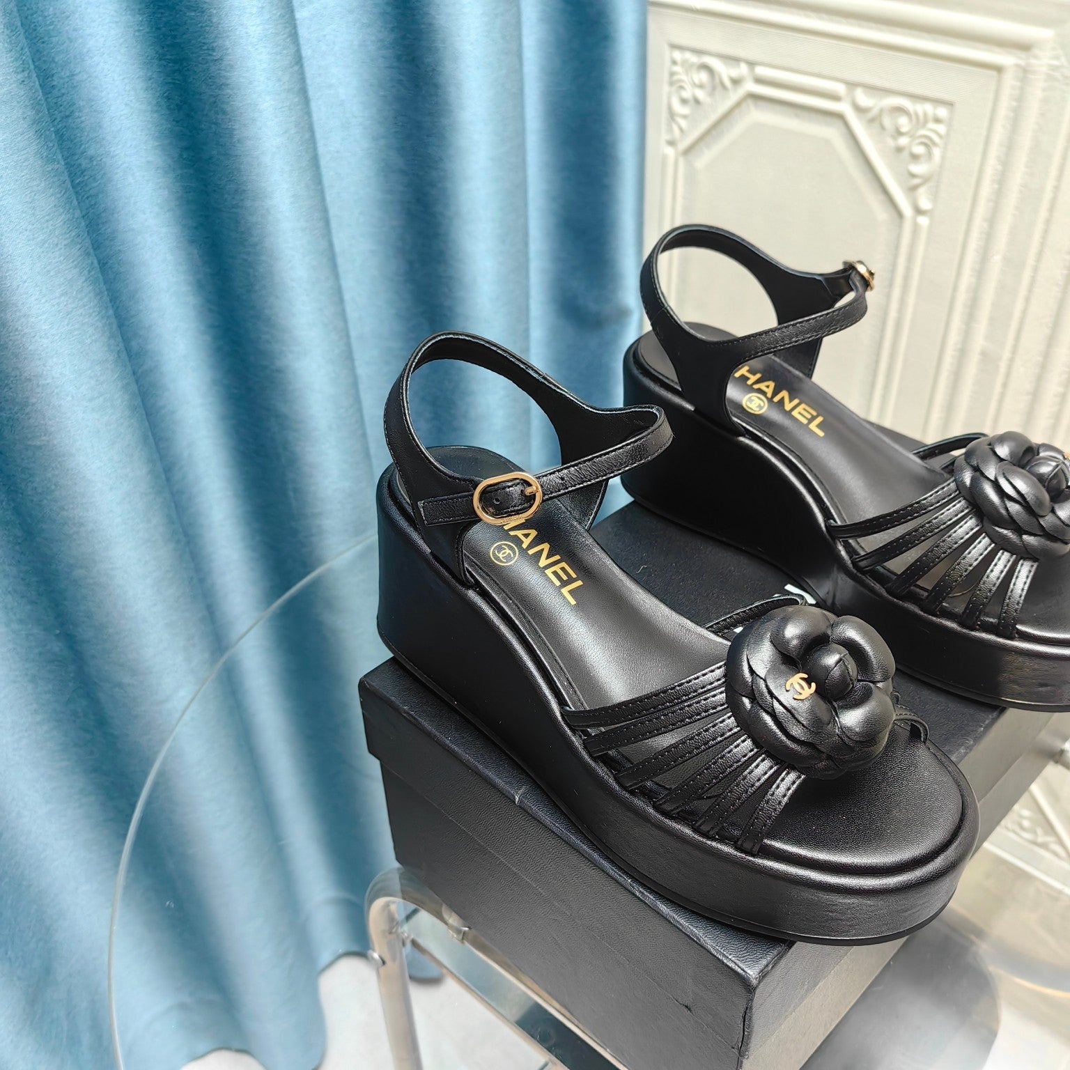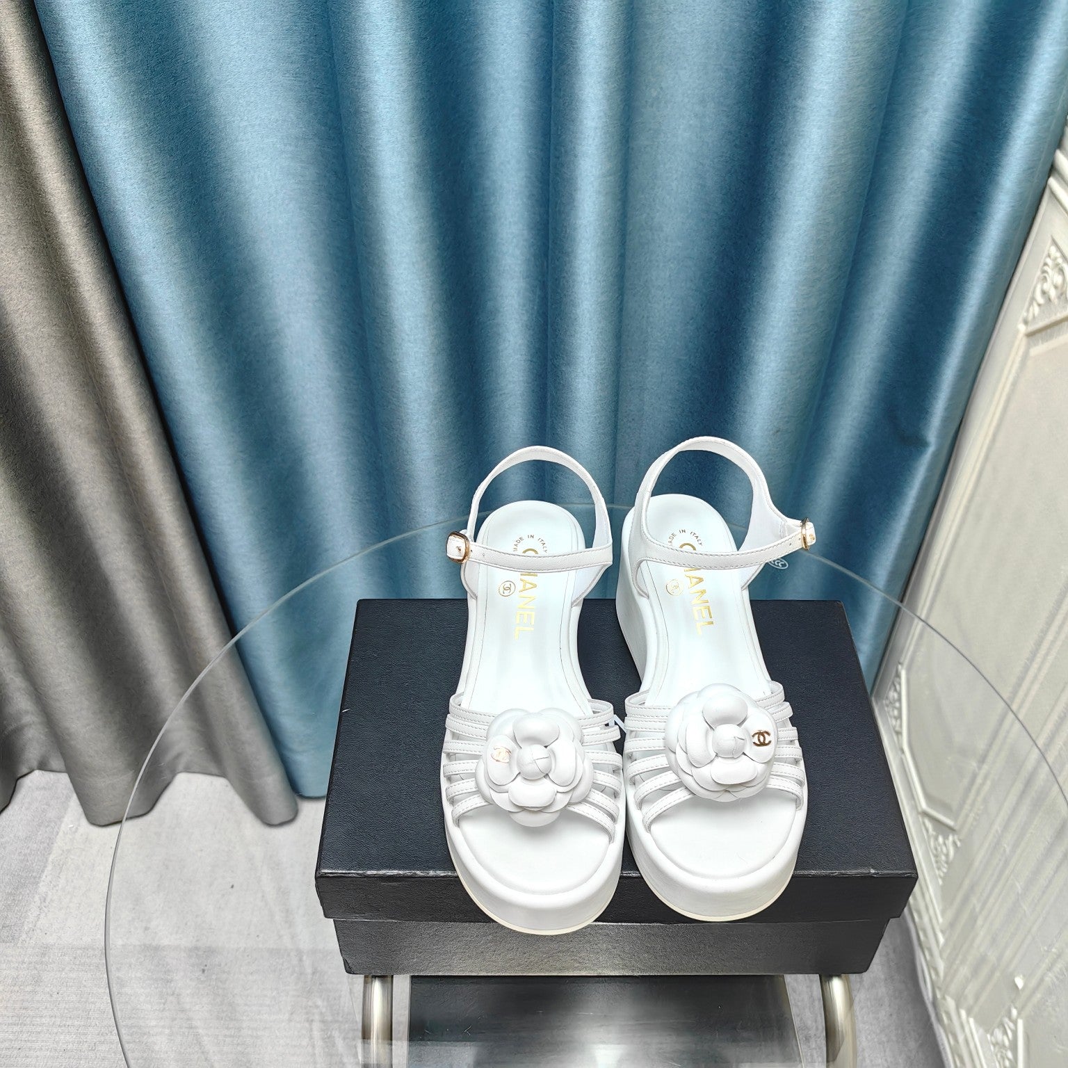 Wedge Open-Toe High Heel Sandals Beige Cream Sheepskin