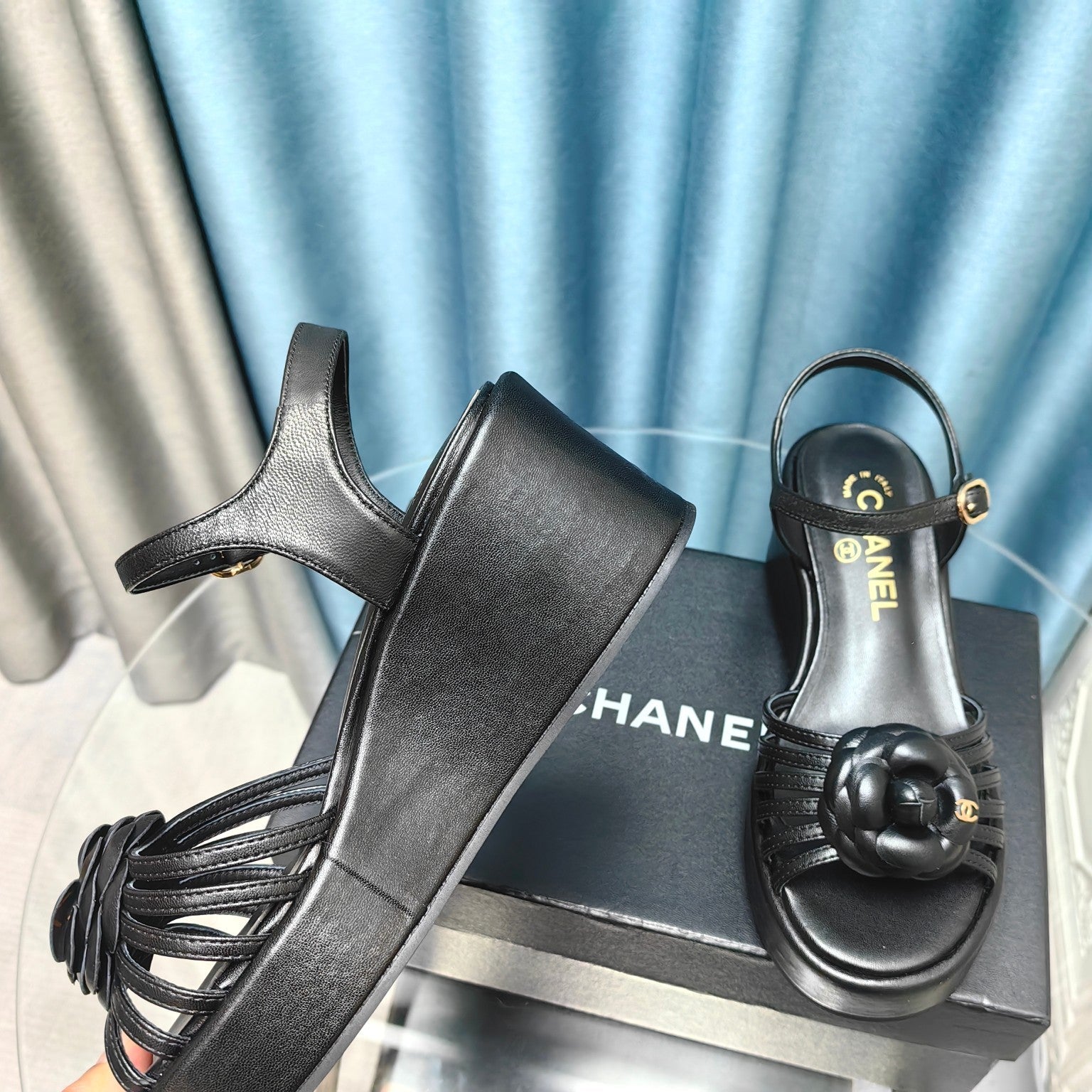 Wedge Open-Toe High Heel Sandals Slate Gray Sheepskin