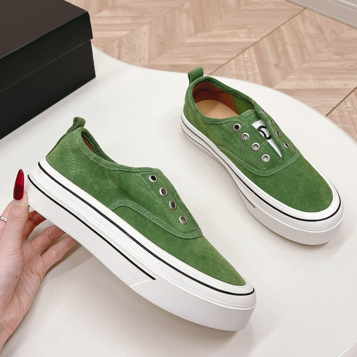 Double C Platform Biscuit Shoes Fabric Cool Green