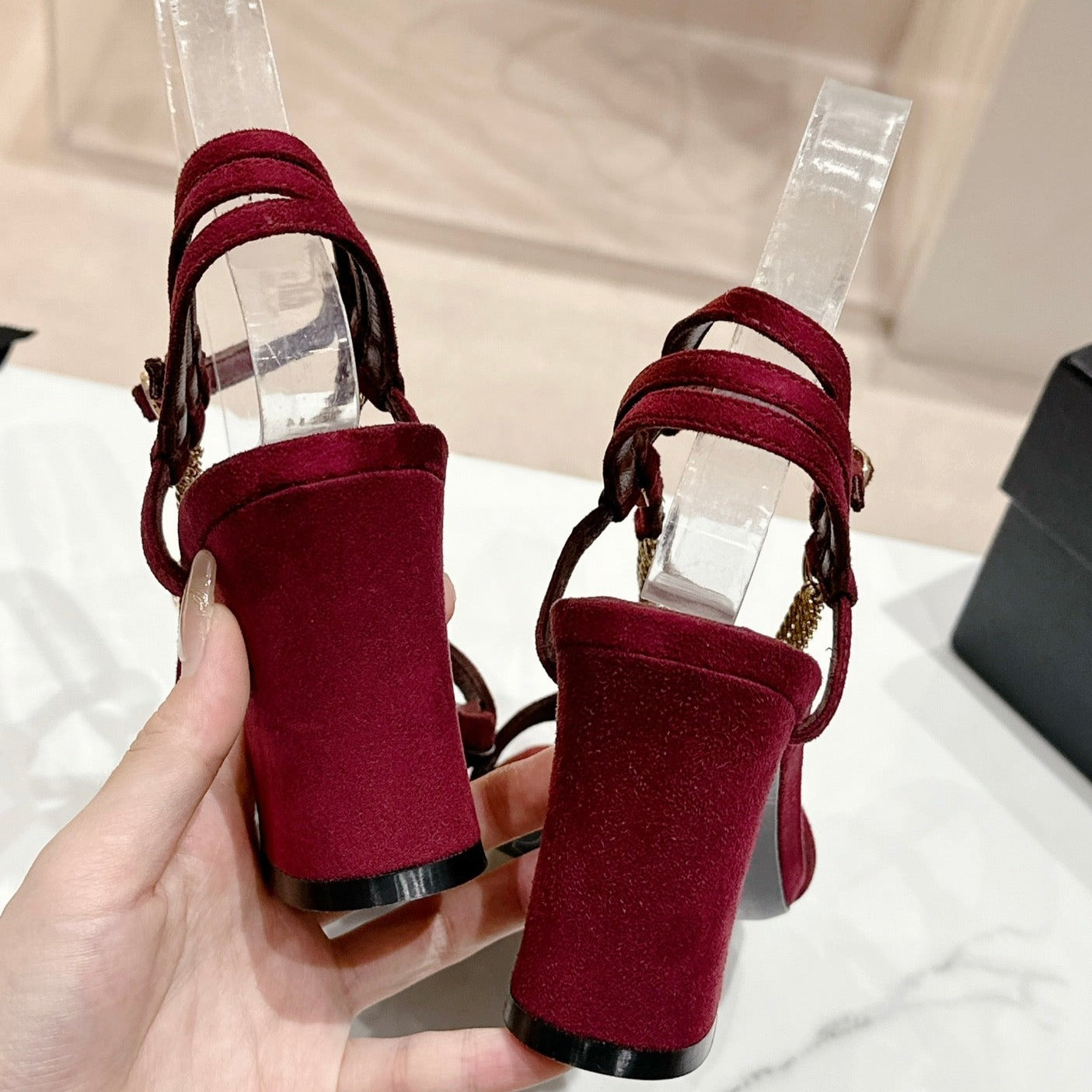 Double C Leather High Heel Sandals Red Cherry