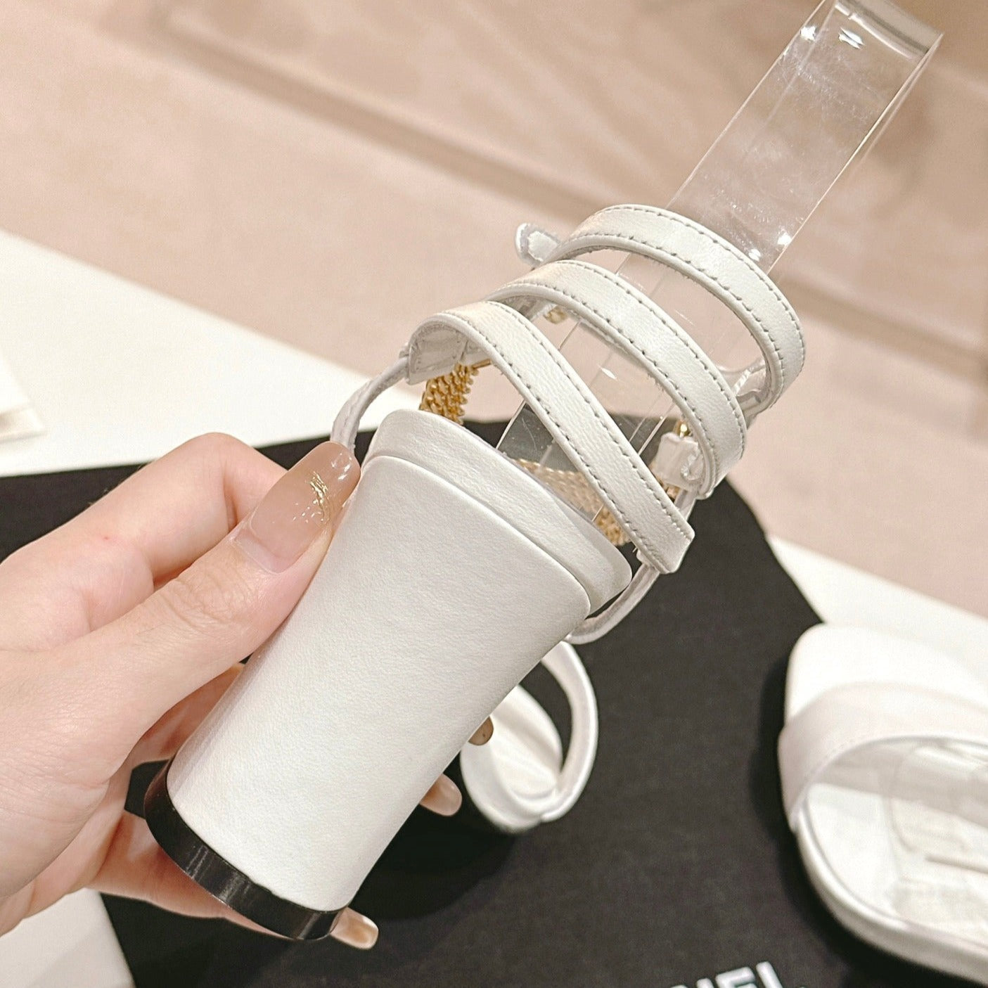 Double C Leather High Heel Sandals Beige Cream