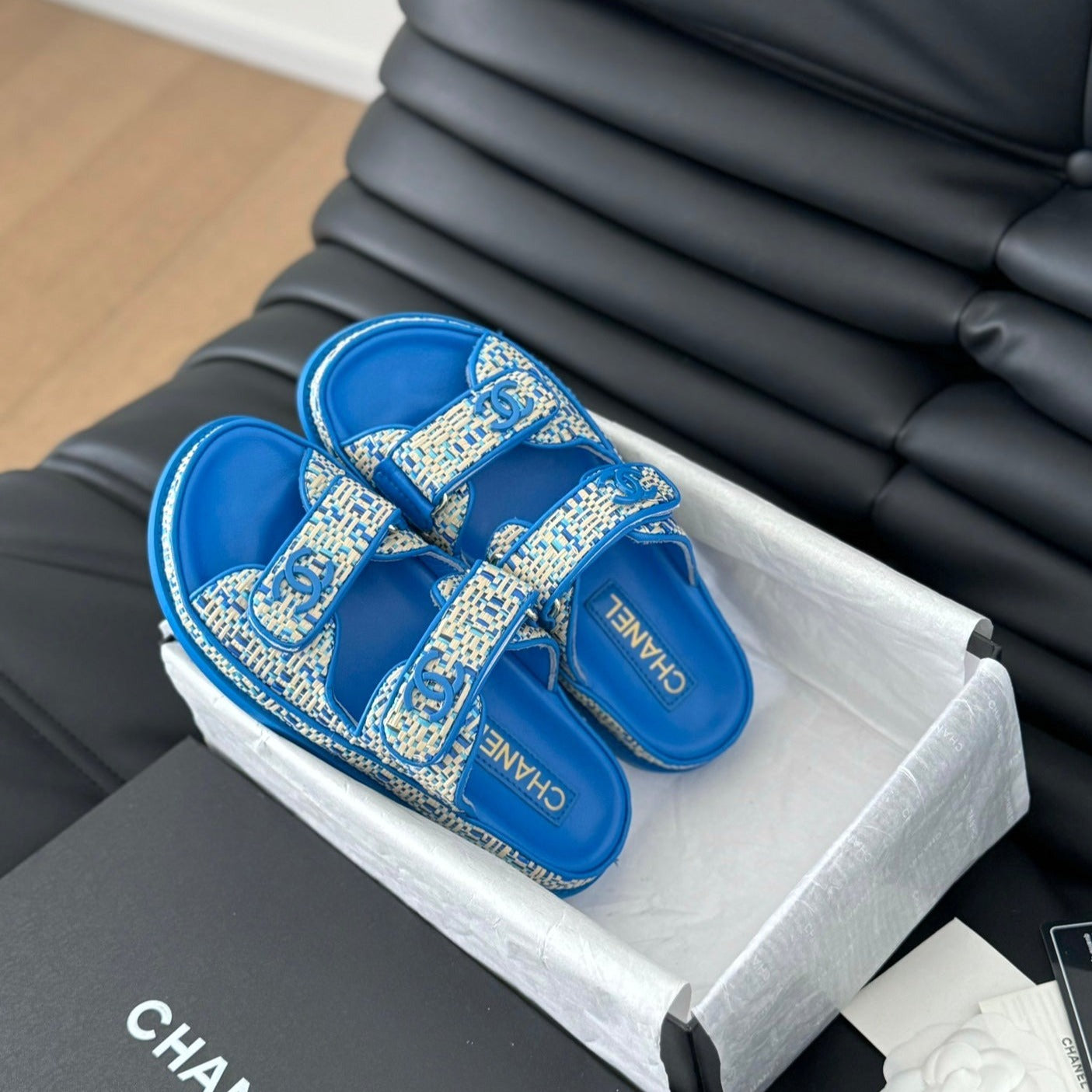 Double C Classic One-Strap Sandals White Sky Blue Lambskin