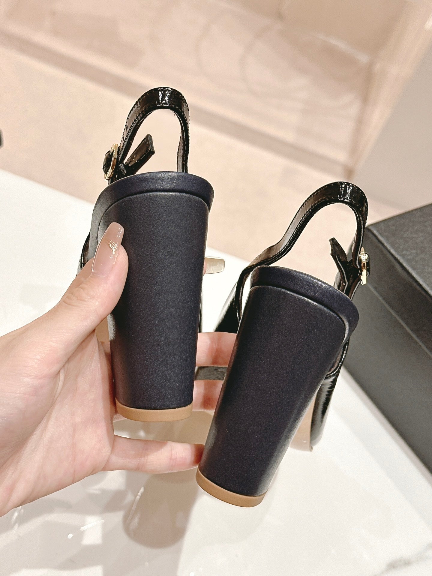 Chanel 25A Slingback Black Patent Calfskin 393073