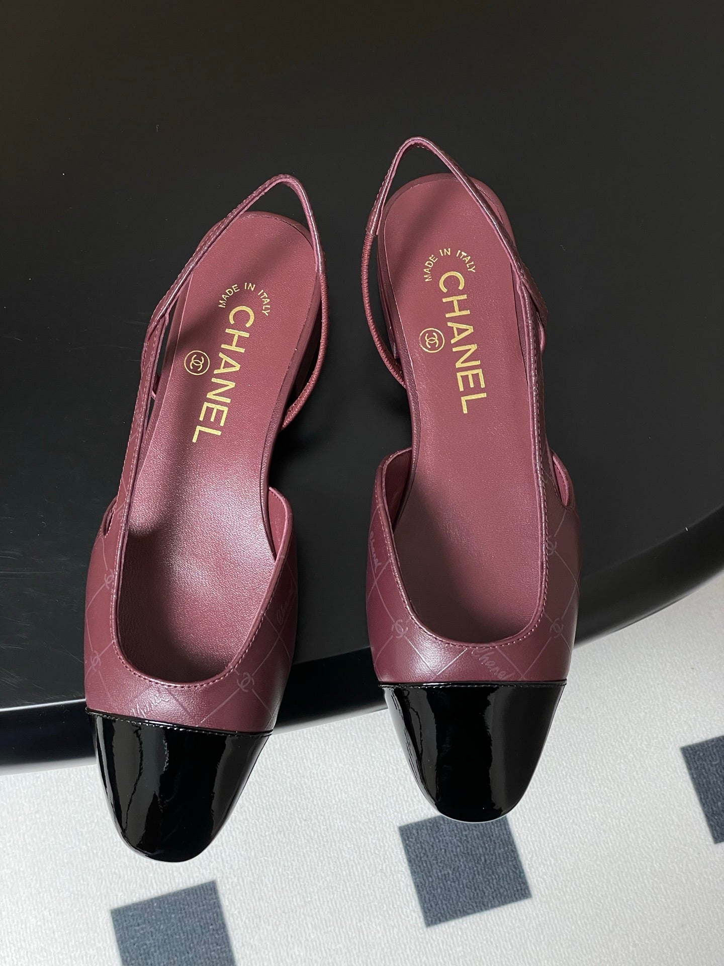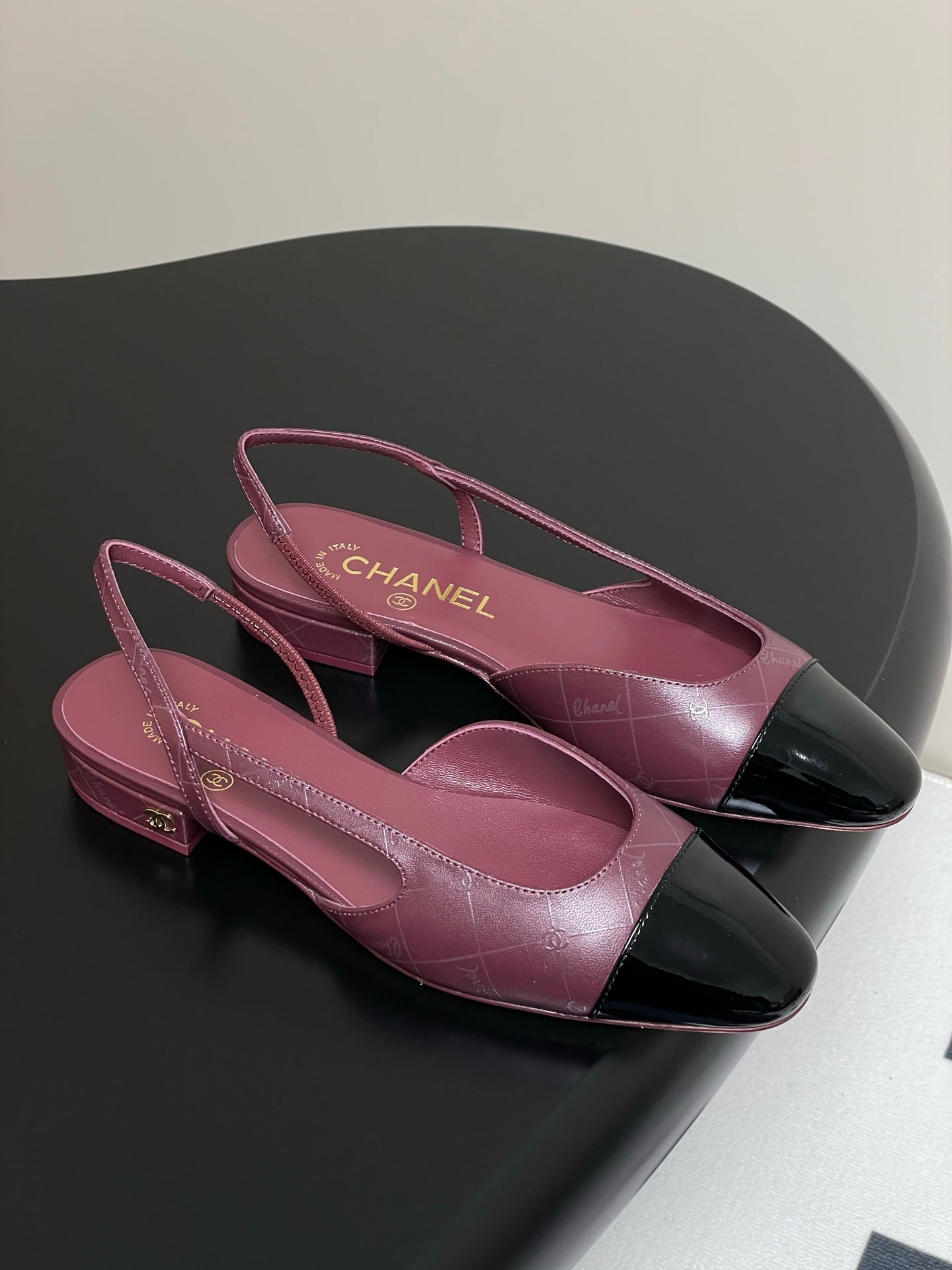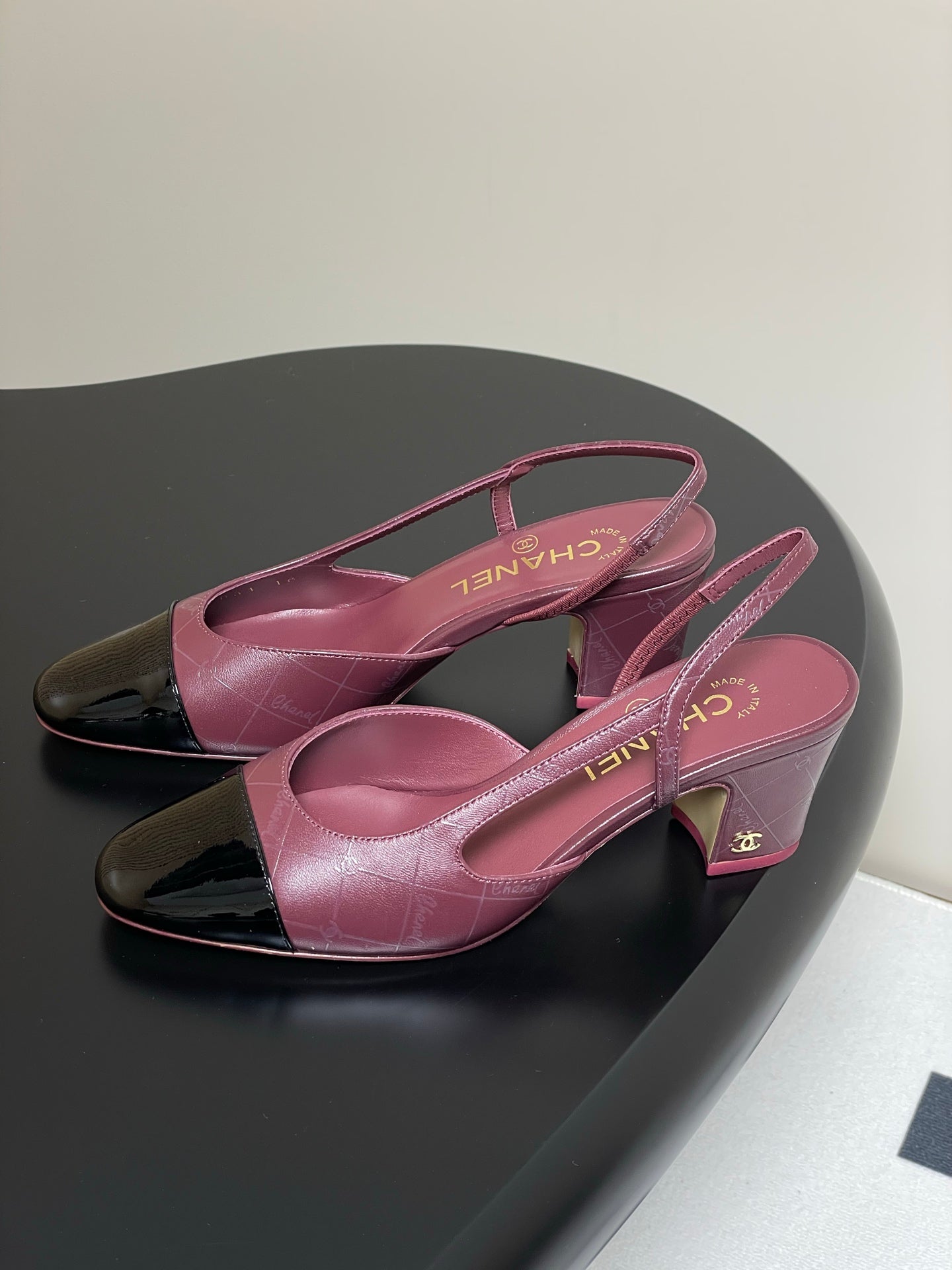 CC 24P SLINGBACKS 95MM PINK BLACK LAMBSKIN
